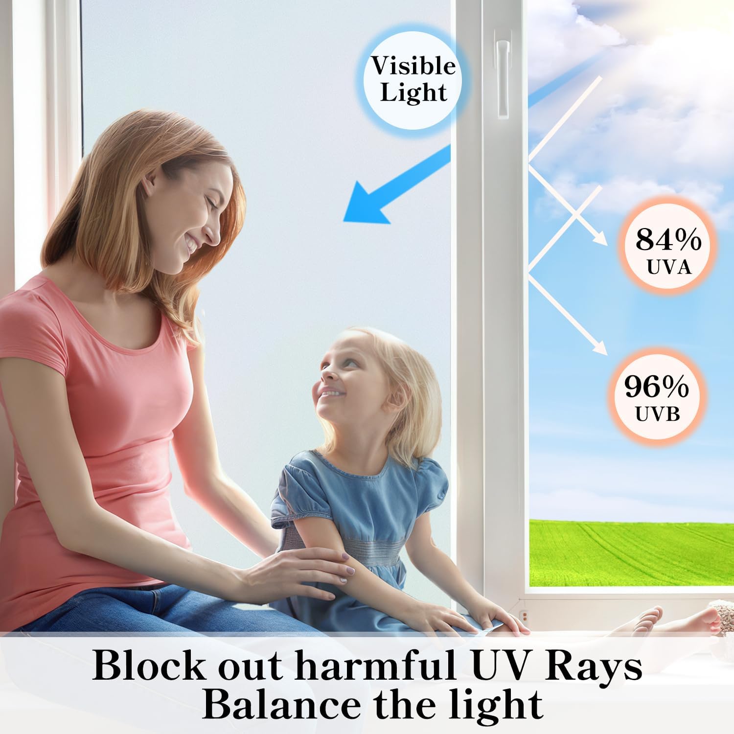 - Privacy Protection: This privacy window film can Instantly change your see-through glass into a white frosted glass panels.Provides Privacy and Allows the Lights in. Privacy Level:5 Star.Top Private Window Films (Outstanding Privacy Protection Even Works For Bathrooms). Widely Suitable For Any Places: Kitchen, Bedroom, Bathroom, Living Room, Dining Room, Office, Hotels, Classroom, Lobby, etc.