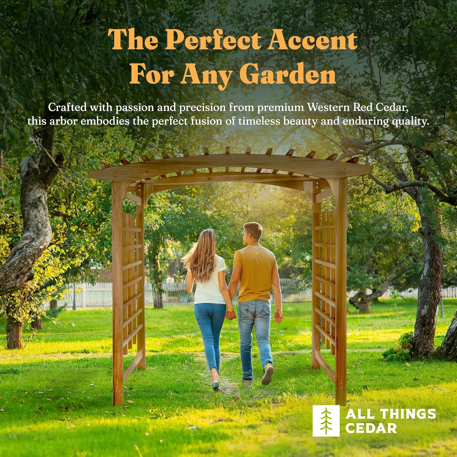 - Handcrafted Elegance: Elevate your outdoor oasis with our 8-ft Western Red Cedar Arbor, meticulously crafted to add timeless charm and natural beauty to your garden