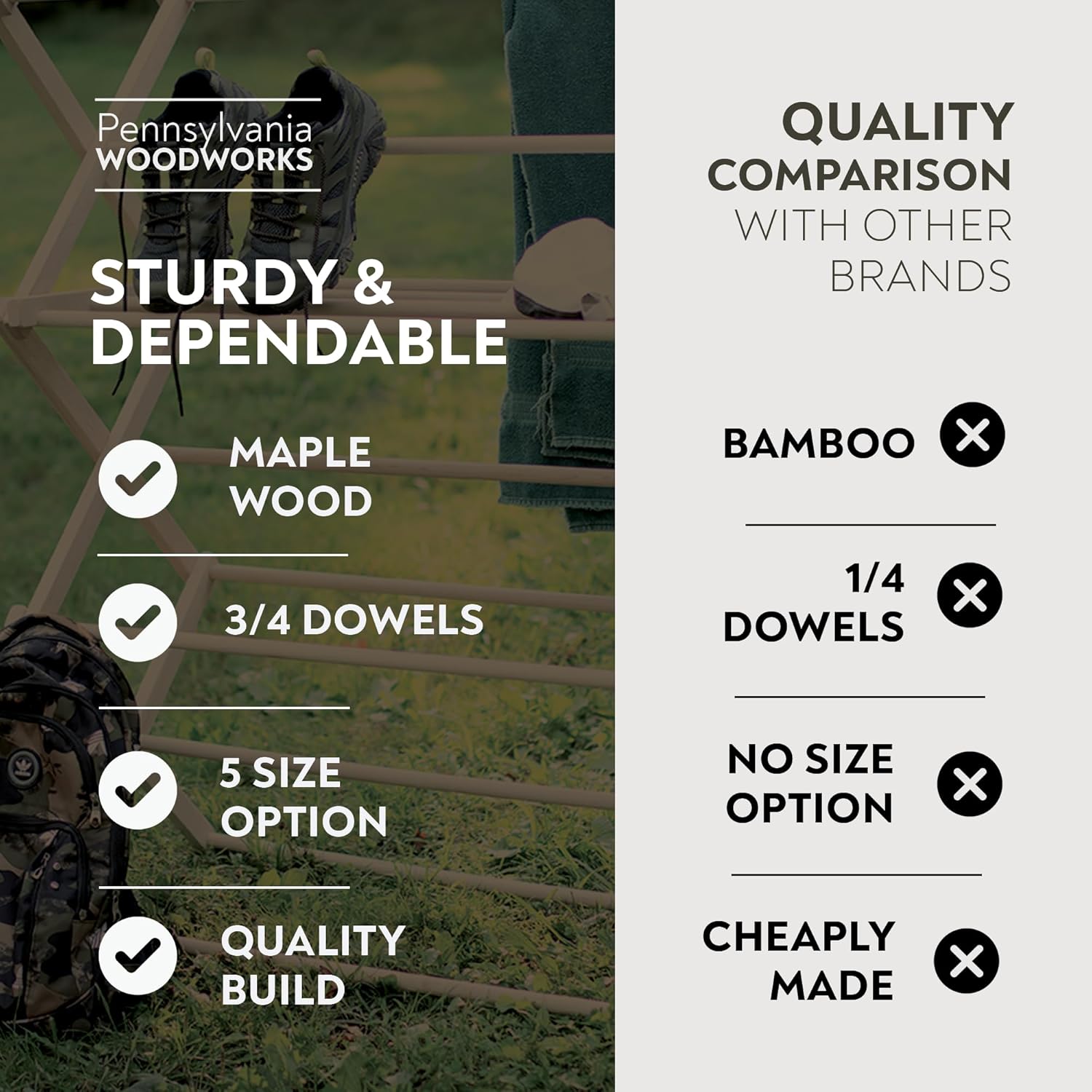 Pennsylvania Woodworks Clothes Drying Rack: Solid Maple Hard Wood Laundry Rack for Sweaters, Blouses, Lingerie & More, Durable Folding Drying Rack, Made in USA, No Assembly Needed, Medium