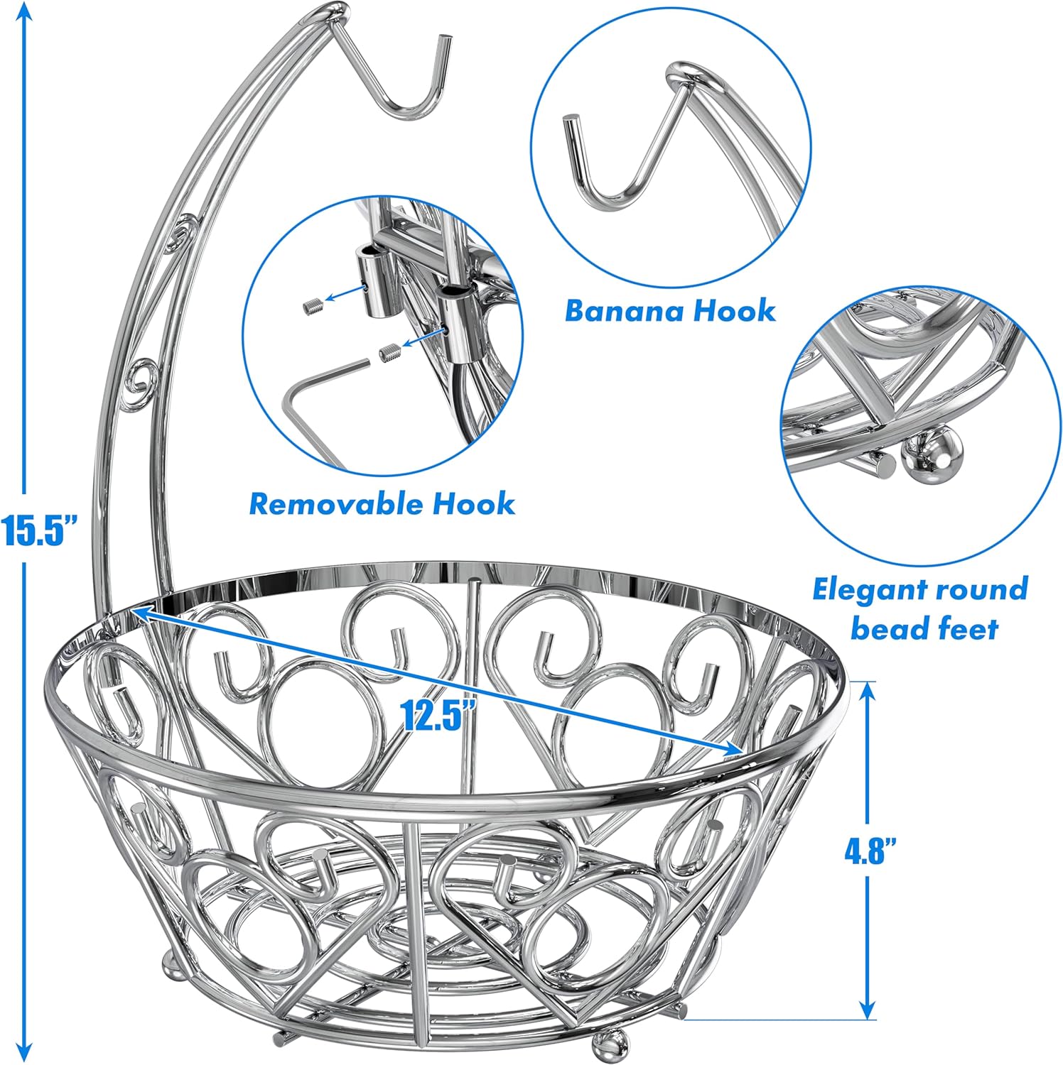 Simple Houseware Fruit Basket Bowl with Banana Tree Hanger, Chrome Finish