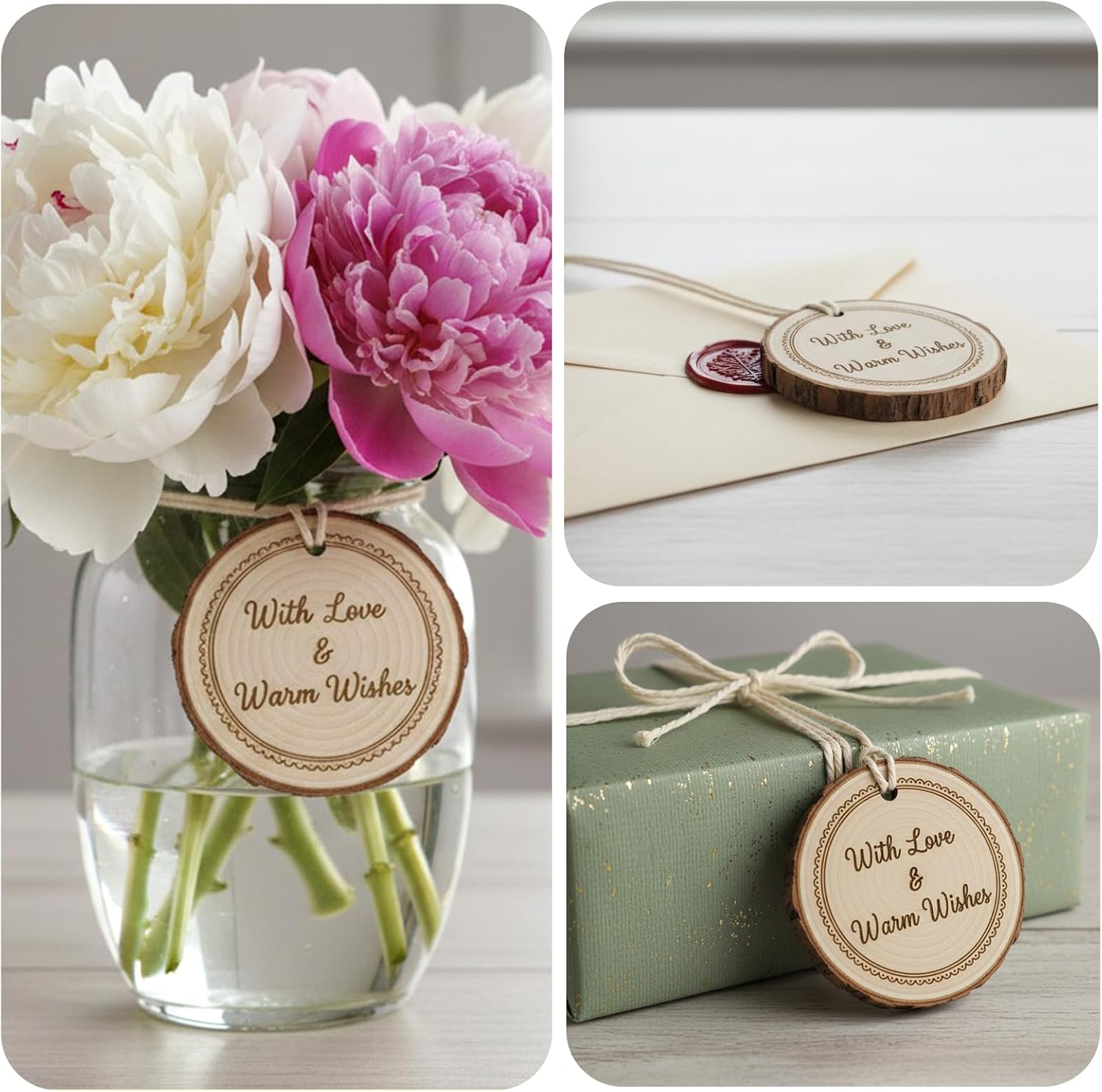 - Package Included: You will receive 40 PCS wood slices with diameters ranging from 2.9 to 3.4 inches and a thickness of 0.4 inches, along with a bundle of 33-foot flax rope. As our wood slices are cut from whole wood, there will be a diameter error of 0.05 to 0.08 inches, but it will not affect your user experience