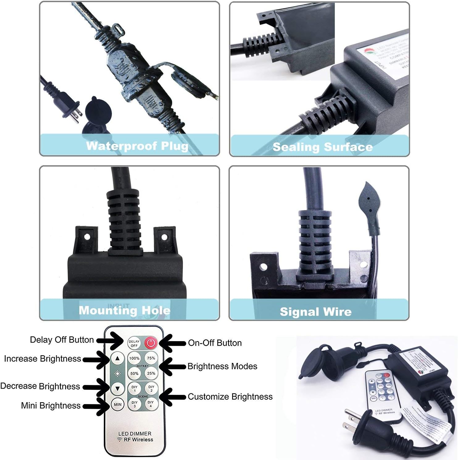 - HIGH-TECH DIMMING EMPLOYED - Designed to withstand the wear and tear of year-round outdoor use, Professional seal technology, dimmer body IP68 provide the best waterproof and safety, plug with waterproof can keep water or rain out. IP65 weatherproof level
