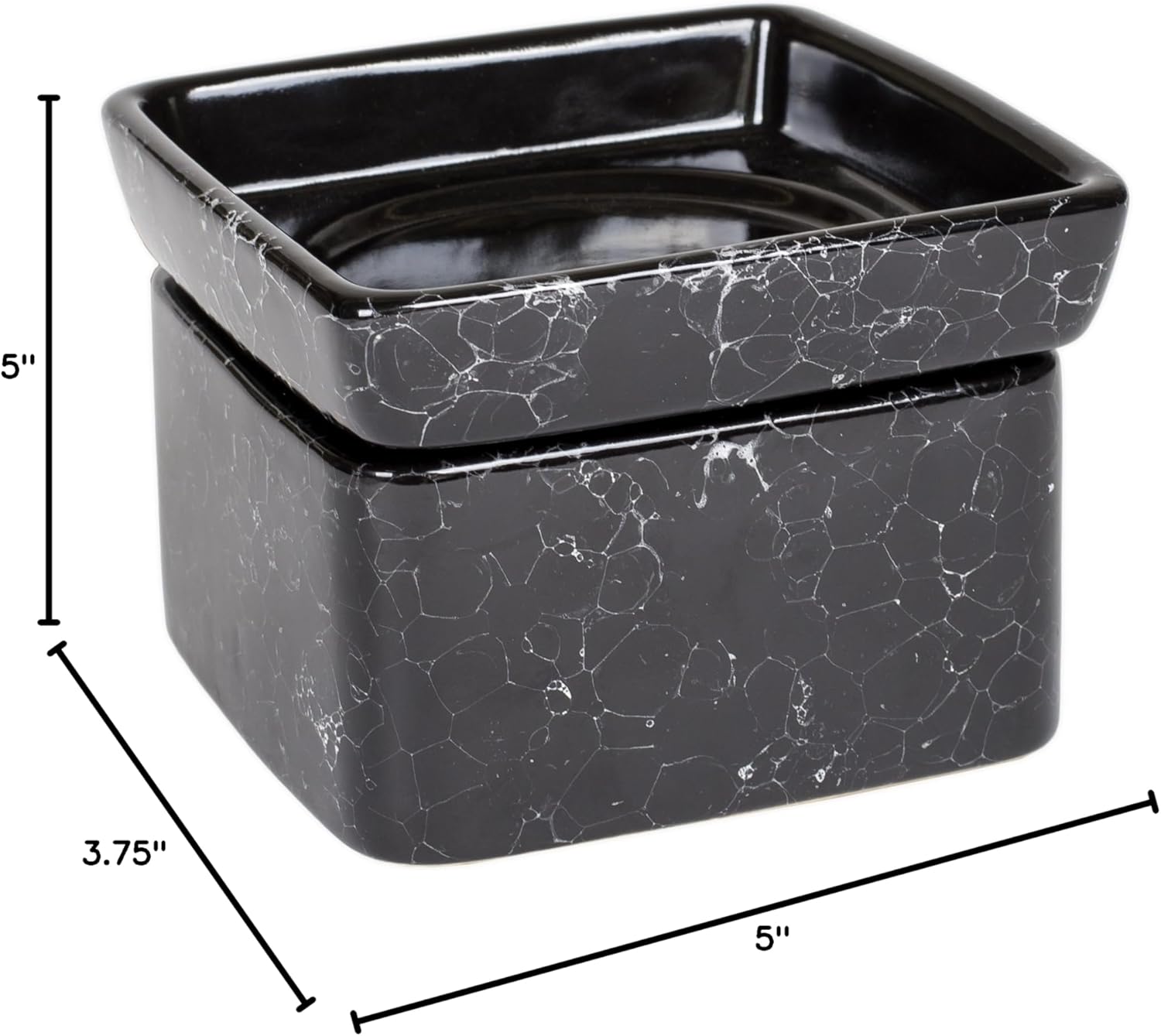 Black Ceramic Stoneware Electric 2-in-1 Tart Wax Oil Candle Warmer (1, Black Marble)