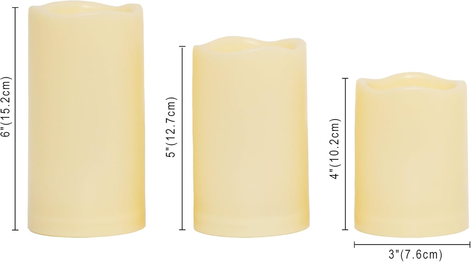 CANDLE CHOICE Waterproof Outdoor Battery Operated Flameless Candles with Timer Realistic Flickering Plastic Fake Electric LED Pillar Lights for Lantern Garden Wedding Christmas Decorations 3 Pack