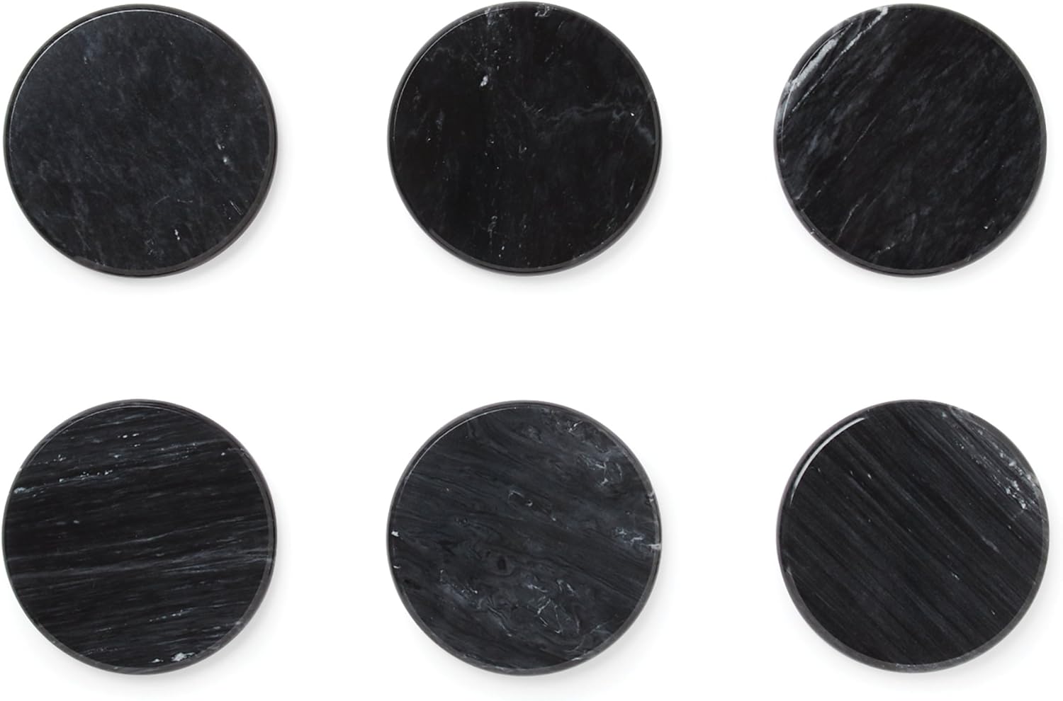 Fox Run Natural Polished Marble Coasters, Set of 6 Black Coasters