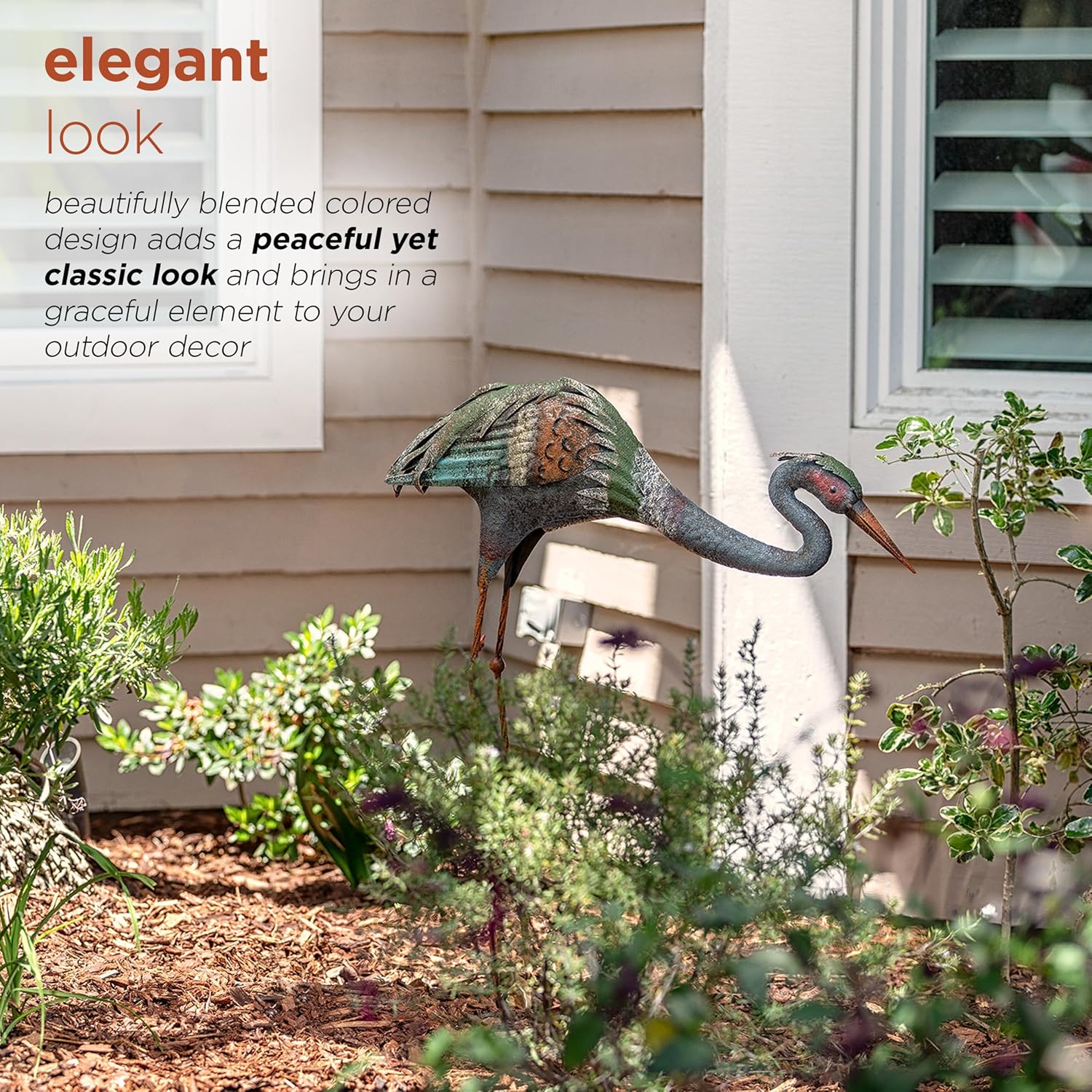 - CRANE STATUE: Colorful rustic crane looks great in your yard or garden, or placed on your deck or porch