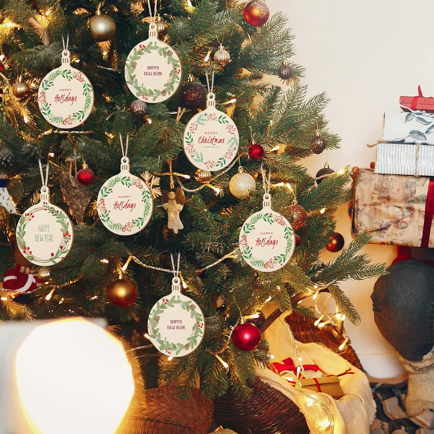 - Instruction: Christmas wooden ornaments equipped with hanging cords, you can hang it on your Christmas trees, torches, doors, windows, cubical wall, ceiling even your garden fences, add romantic and festival atmosphere, also it can be applied as card for gift sending and craft working