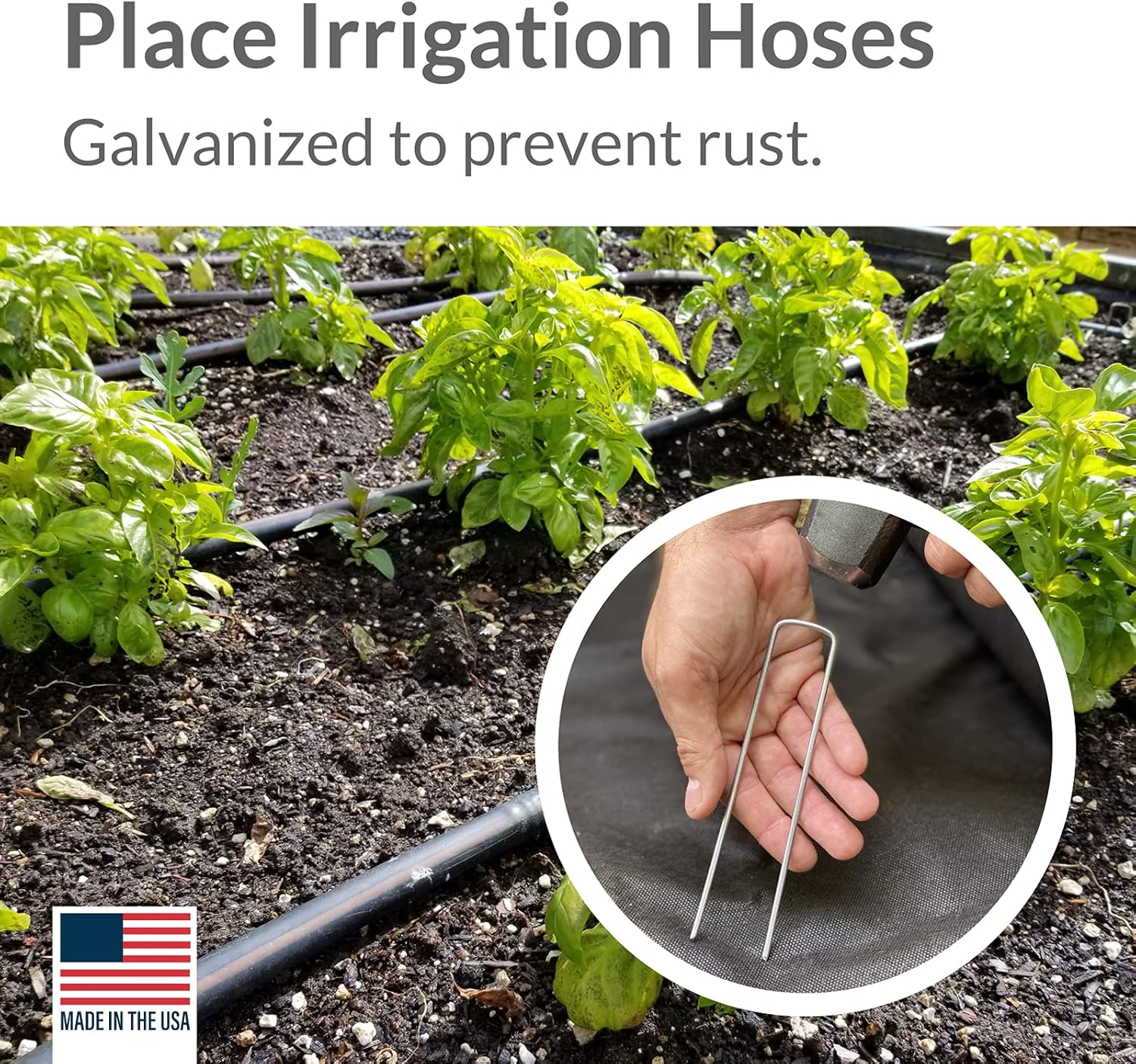 Pinnacle Mercantile USA Made 200 Pack Garden Landscape Staples Weed Barrier Fabric Stakes Galvanized 6 inch Pins Anti Rust Sod Staple 11 Gauge Steel