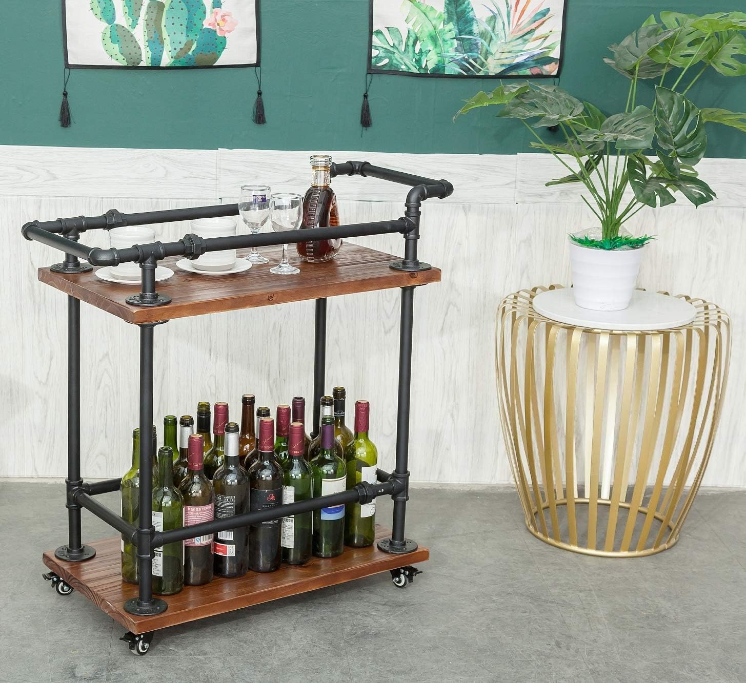 - 3.【ATTRACTIVE APPEARANCE BAR CARTS】 - A perfect balance of understated organization and industrial style. The simple construction creates an attractive and modern look.The perfect combination of high quality steady water pipe and vintage thick solid wood grain add an elegant and luxury touch to your any room.
