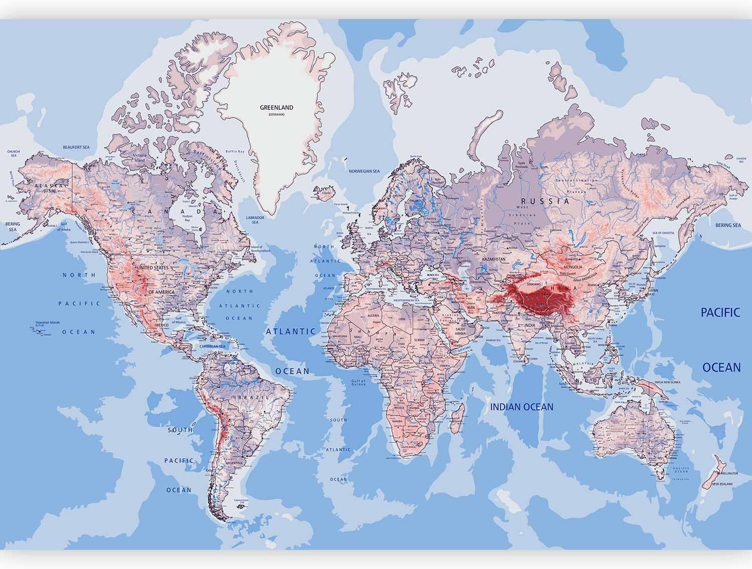 artgeist Wall Mural World Map 116x83 in - XXL Peel and Stick Self-Adhesive Wallpaper Removable Large Sticker Foil Wall Decor Print Picture Image Design Map of The World k-A-0061-a-b