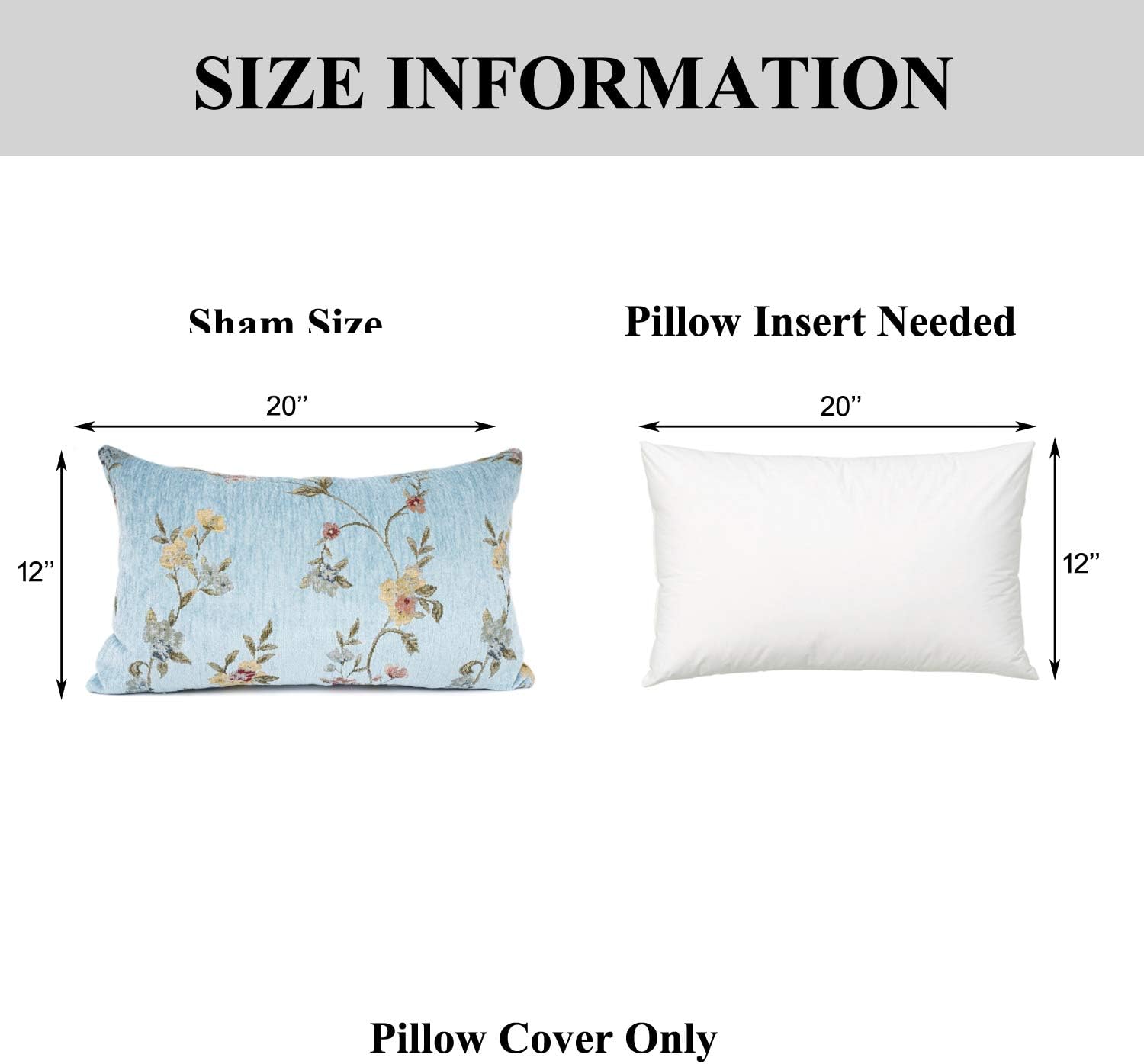 YOUR SMILE Classical Embroidery Jacquard Farmhouse Oblong Rectangle Chenille Teal Floral Pattern Decorative Throw Pillow Case,12x20 inch