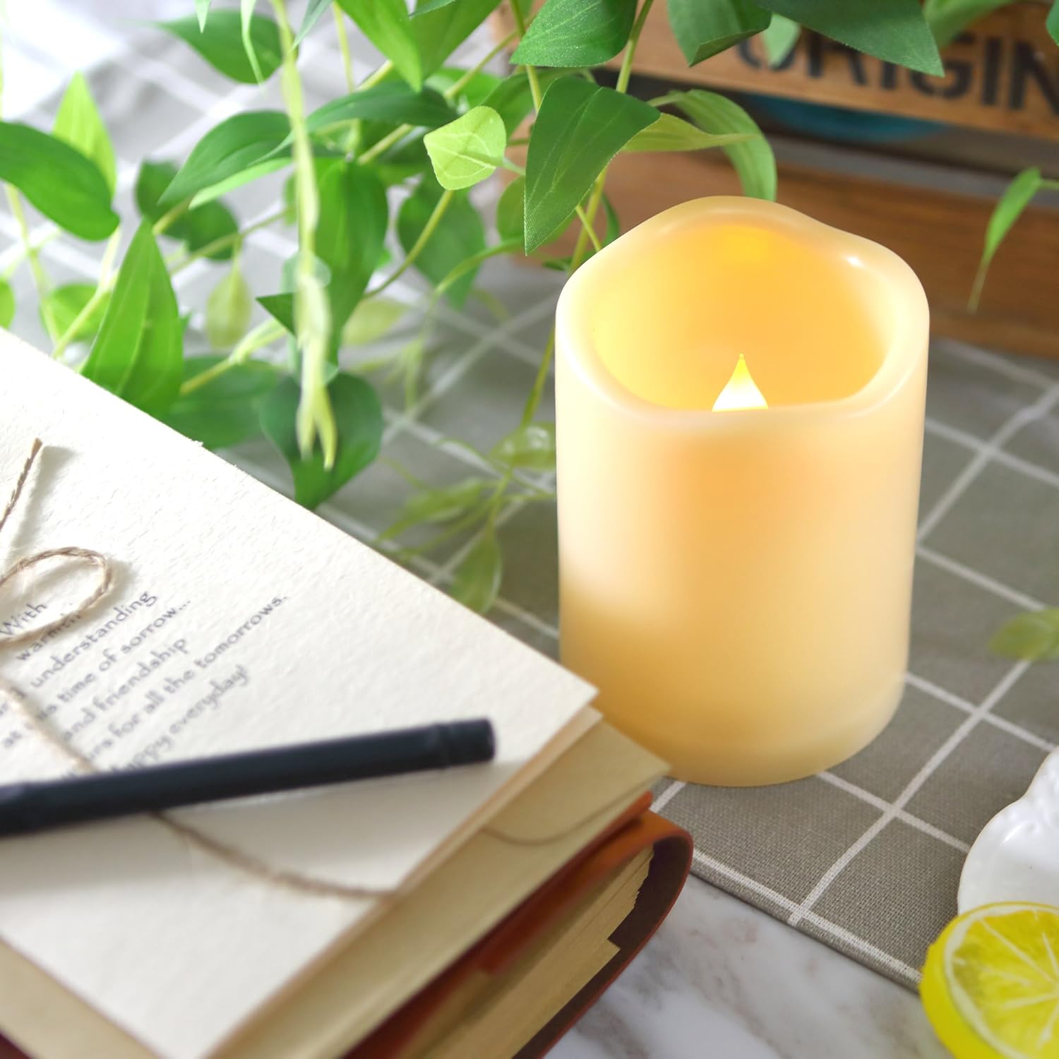 - <b>Easy to use with timer.</b>There is a built-in timer inside each battery LED candle. Once the pillar candle is turned on, the timer starts to work. The LED flameless candle stays on for 6 hours and turns off automatically for the next 18 hour. This 6-hour on, 18-hour off cycle repeats every day. The daily cycle timer saves the troubles of turning on and off this flameless LED candle light manually.