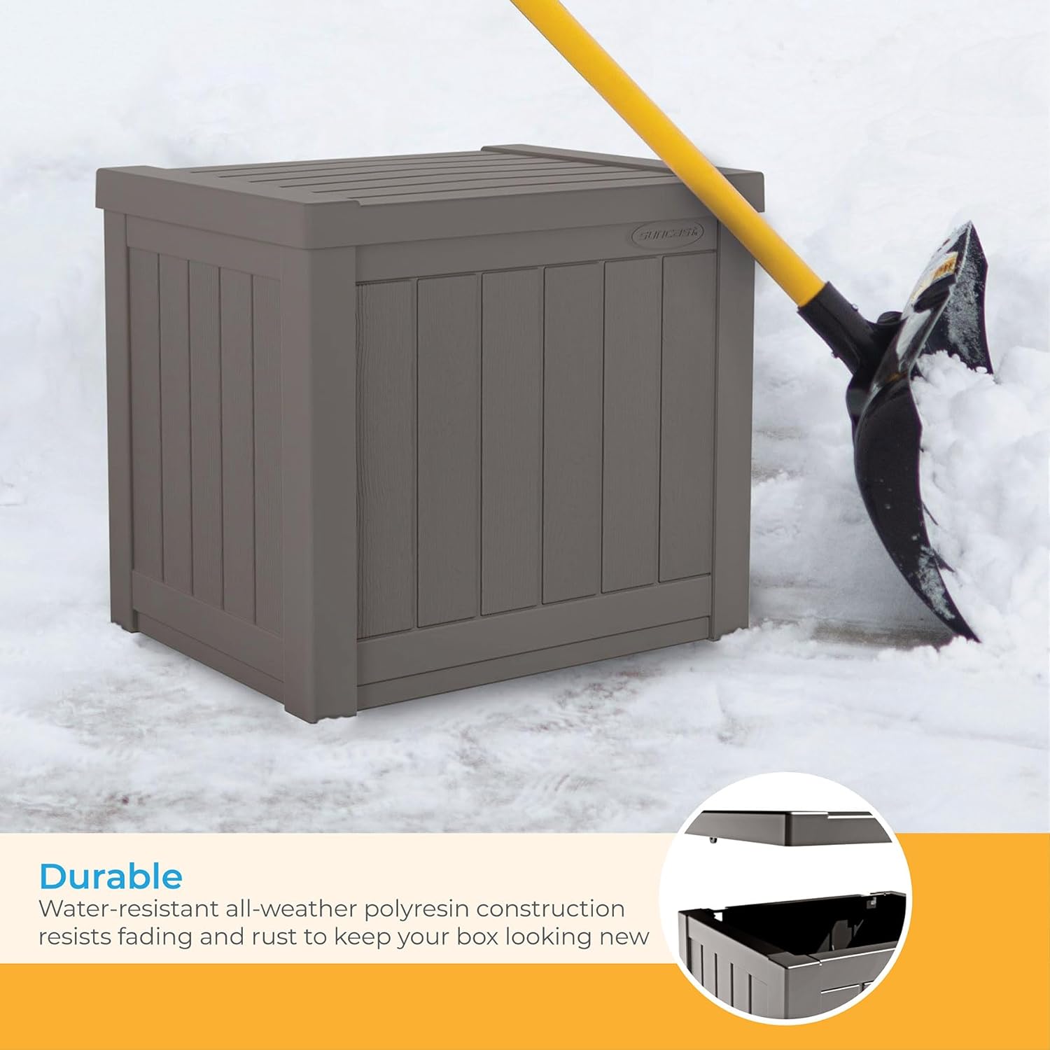 Suncast 22-Gallon Small Deck Box - Lightweight Resin Indoor/Outdoor Storage Container and Seat for Patio Cushions and Gardening Tools - Store Items on Patio, Garage, Yard - Stone Gray, Made in the USA