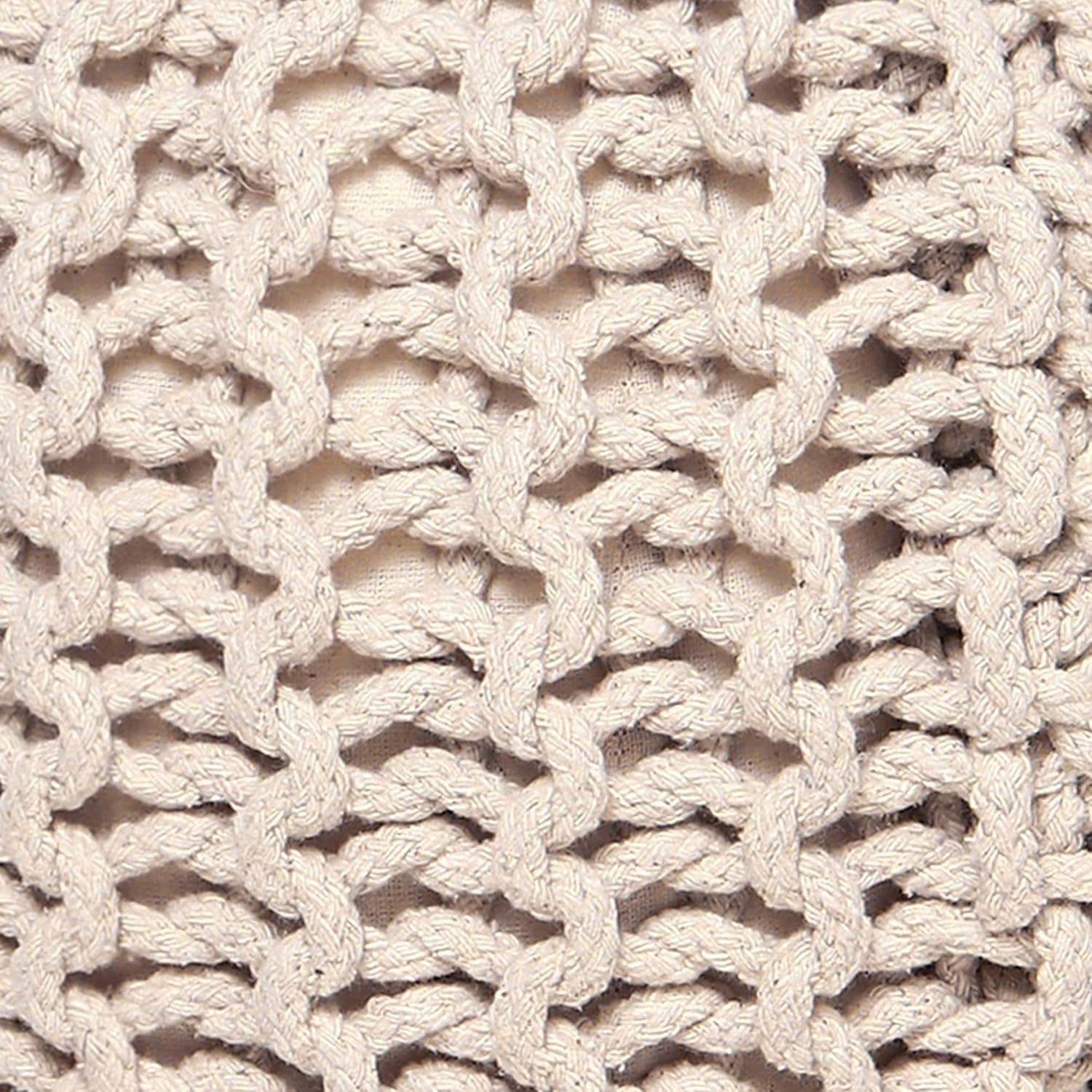 REDEARTH Round Pouf Ottoman - Cable Knitted Boho Poof - Home Décor Cord Pouffe Handmade Circular Footrest for Living Room - Bedroom - Kids Bedroom - 100% Cotton Pouf (18" x 18" x 14") - Ivory