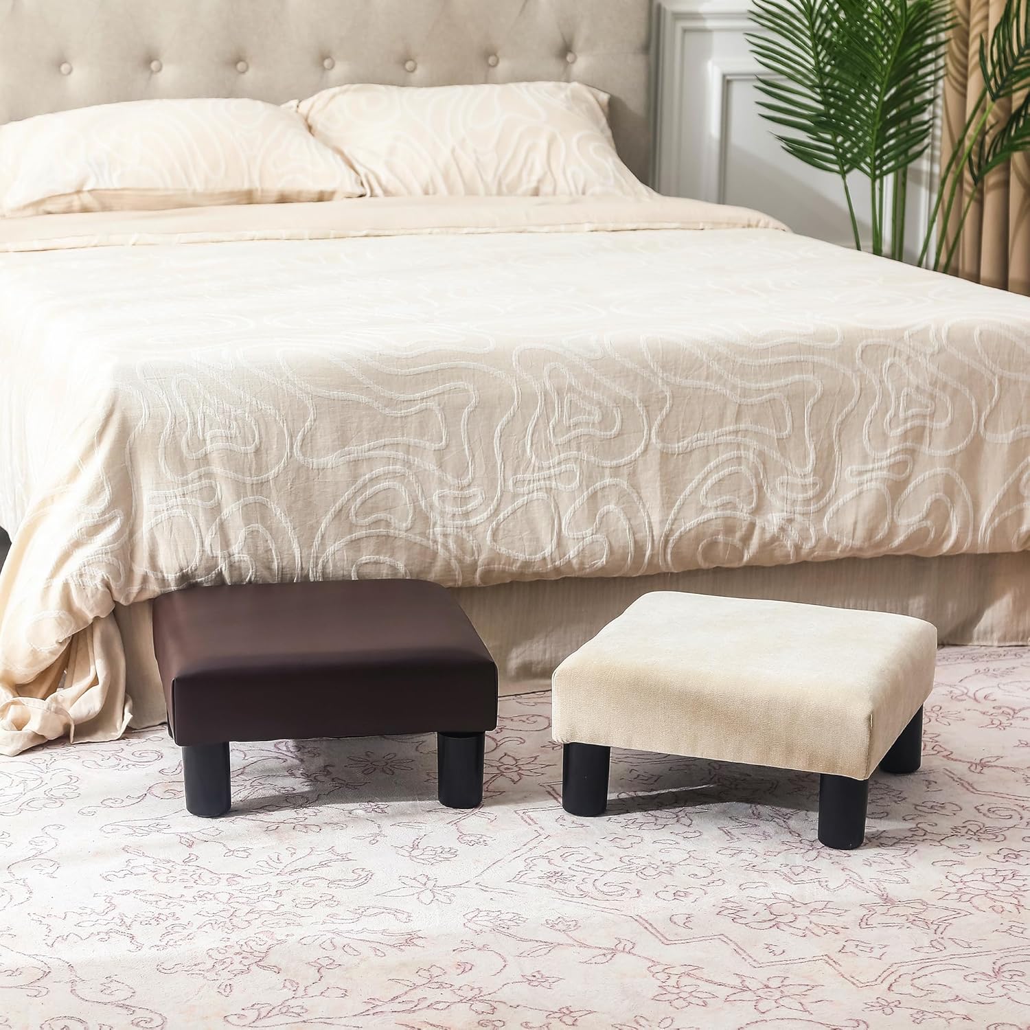 Joveco Small Foot Rest Stool Ottoman, 15" Fabric Square Footstool Upholstered Footrest for Chair, Under Desk, Office, Living Room, Wheat