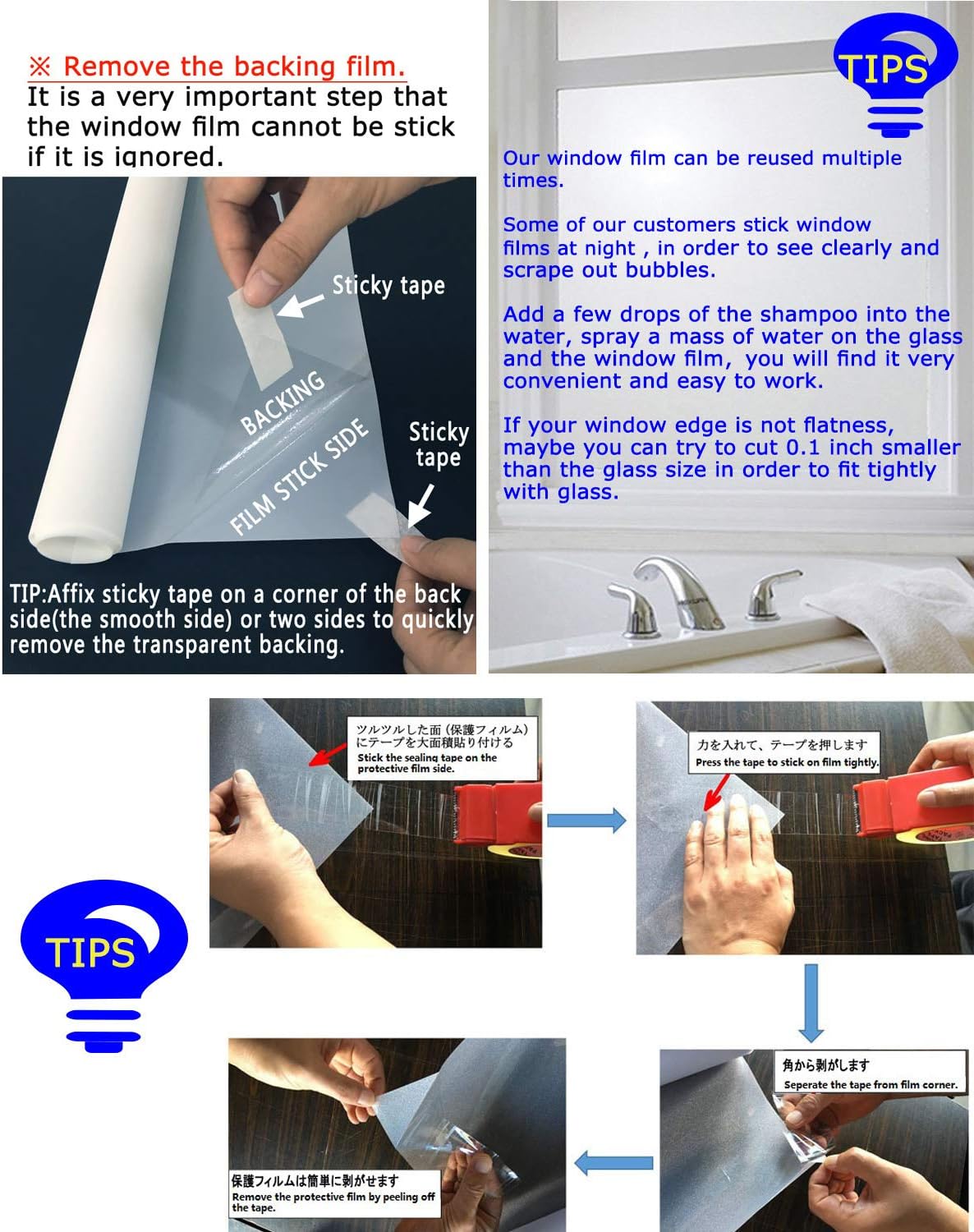 - Note: Please Make sure window surface is completely clean and absolutely free of any blemishes, and tear off the outside protection film before you post the privacy window film on the smooth surface. Easy to cut into any size to meet your special needs.