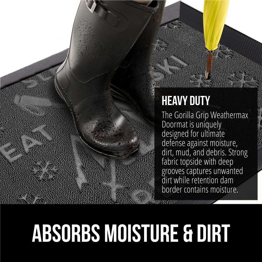 GORILLA GRIP 100% Waterproof All-Season WeatherMax Doormat 35x23, US Designed Natural Rubber, Stain and Fade Resistant, Low Profile Indoor Outdoor Door Mats, Easy Clean Patio Mat, Graphite Skiing