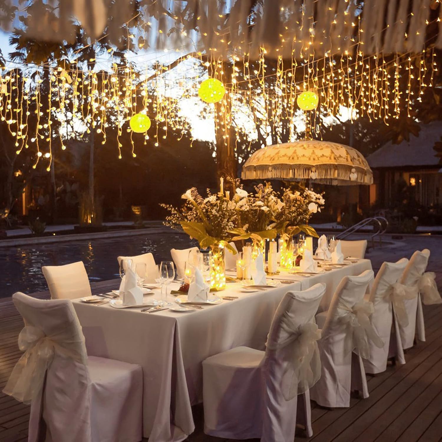 JMEXSUSS 200 LED Icicle Lights, 8 Modes Icicle Lights Indoor, Warm White Icicle Christmas String Lights Outdoor Waterproof for Xmas Roof Wedding Party Holiday Room Home Decorations