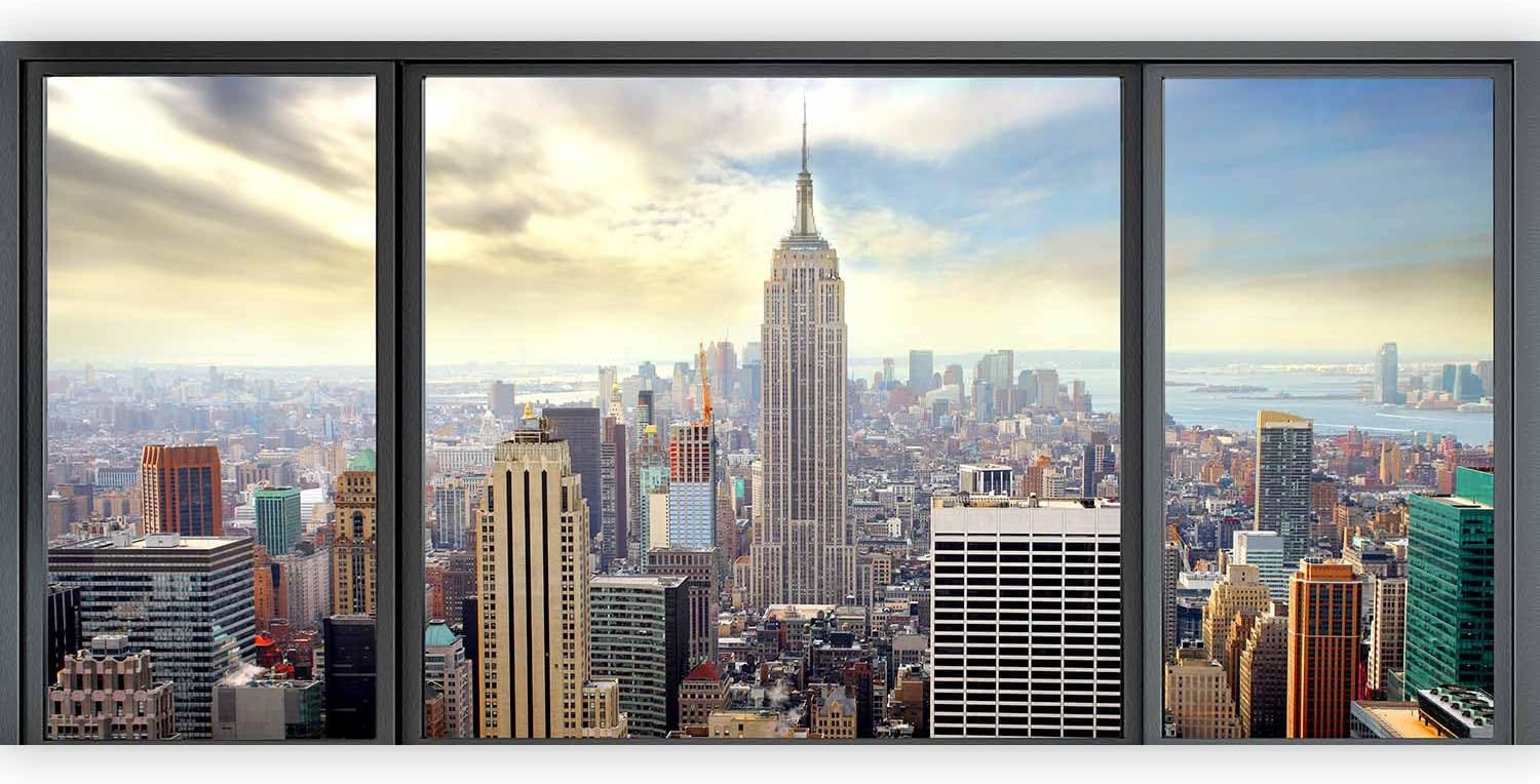 artgeist Wall Mural New York 216x98 in - XXL Non-Woven Corner Wallpaper Fleece Angle Wall Decor Photo Print Picture Image Design Modern City Panorama Window View NYC c-A-0046-a-a