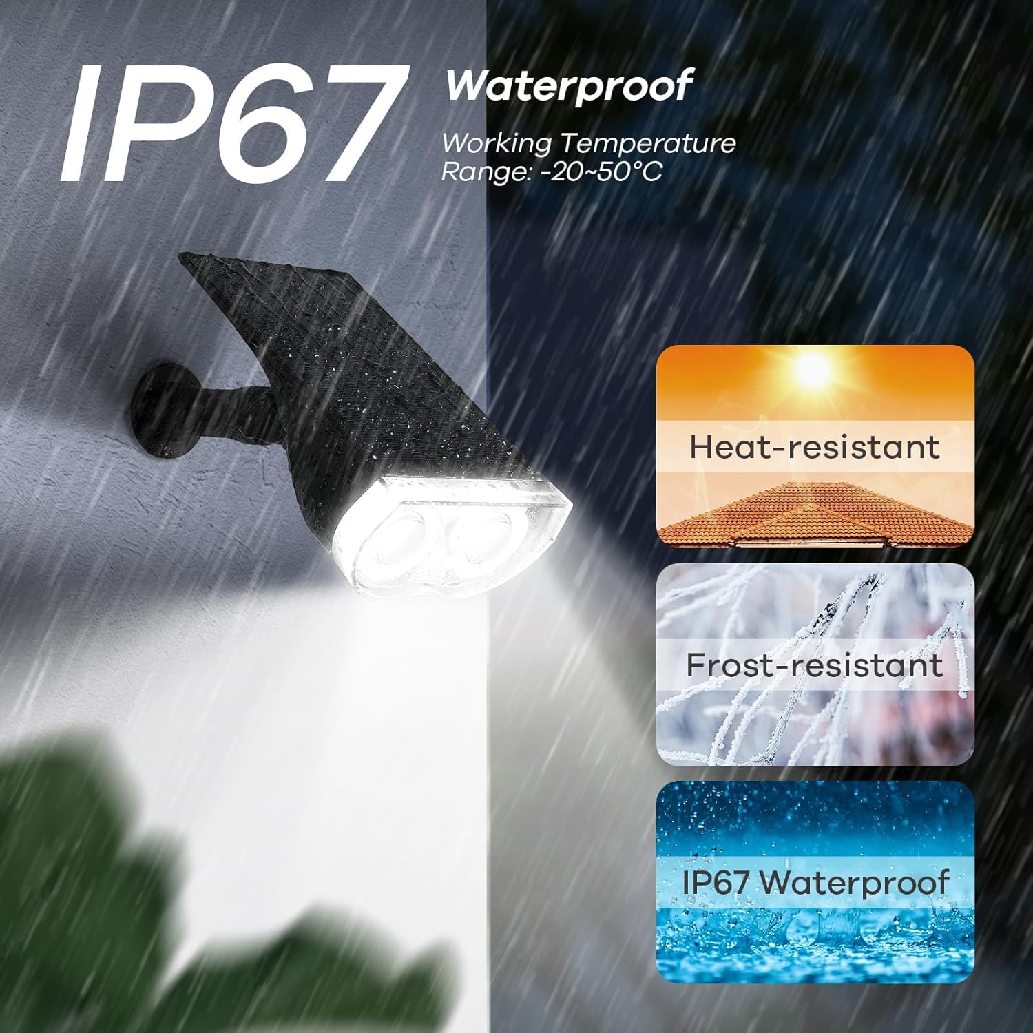 - [Super Bright & Energy Efficient] Solar lights outdoor equipped with 22 high-brightness LEDs, delivering 650 lumens of 6500K daylight. With a 90° beam angle, these solar spotlights are 50% brighter than standard models, ensuring optimal lighting for yards, pathways, patios, and more