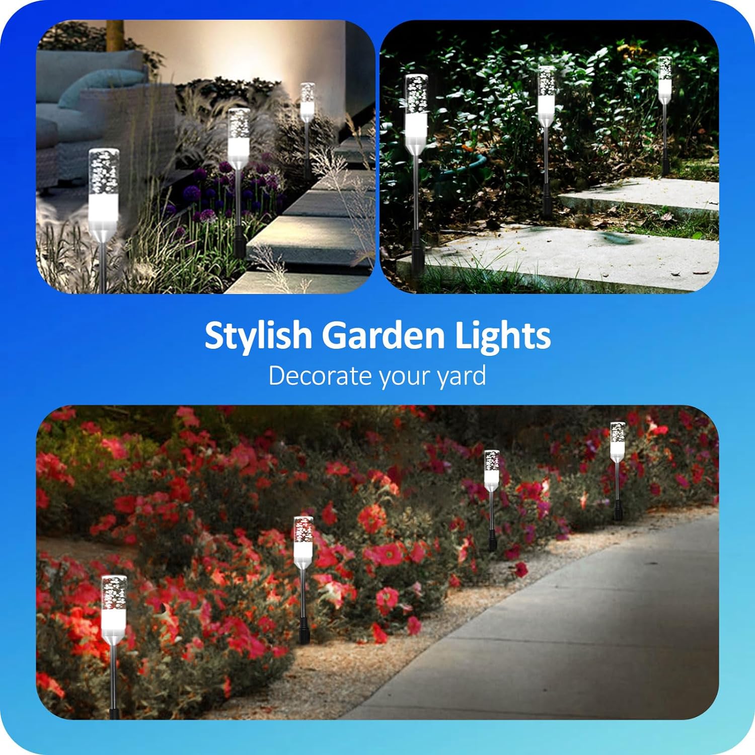 - Unique Design: The crystal-like transparent light body brings a elegant, special style to your yard. There are tiny bubbles in light, as if a string of crystal clear pearls suspended among them. The ideal garden light, emitting clear led light at night; high CRI, let the light faithfully illuminate all the colors in your garden, let your night also colorful.