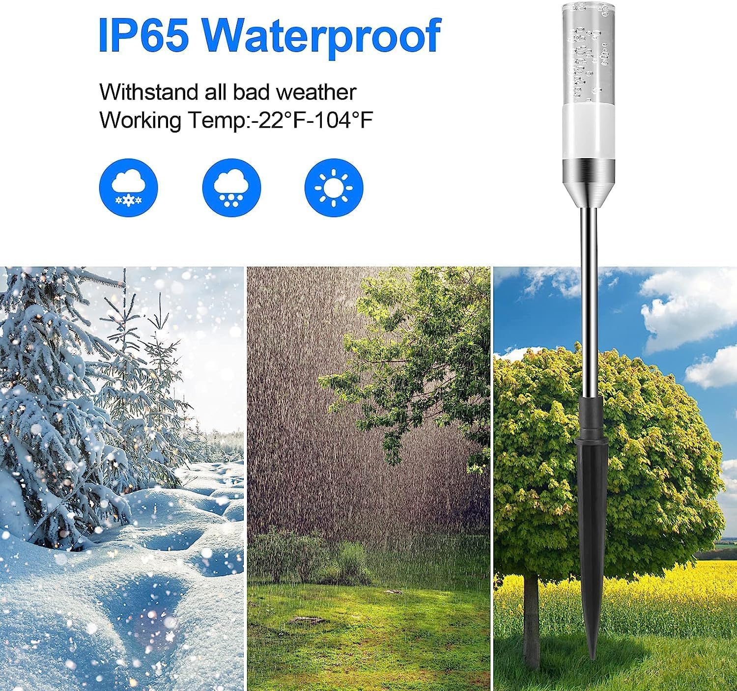 - Hight Quality Aluminum Metal, IP65 Waterproof: Are you still worried that stainless steel path lights will rust or the battery-powered solar pathway lights not working or not getting dimmer? If yes, our pathway lights can keep away from these problem. Made of high quality Aluminum Metal, these garden light are IP65 waterproof, which enables to withstand snow, rain, sunlight, most apply to outdoors.