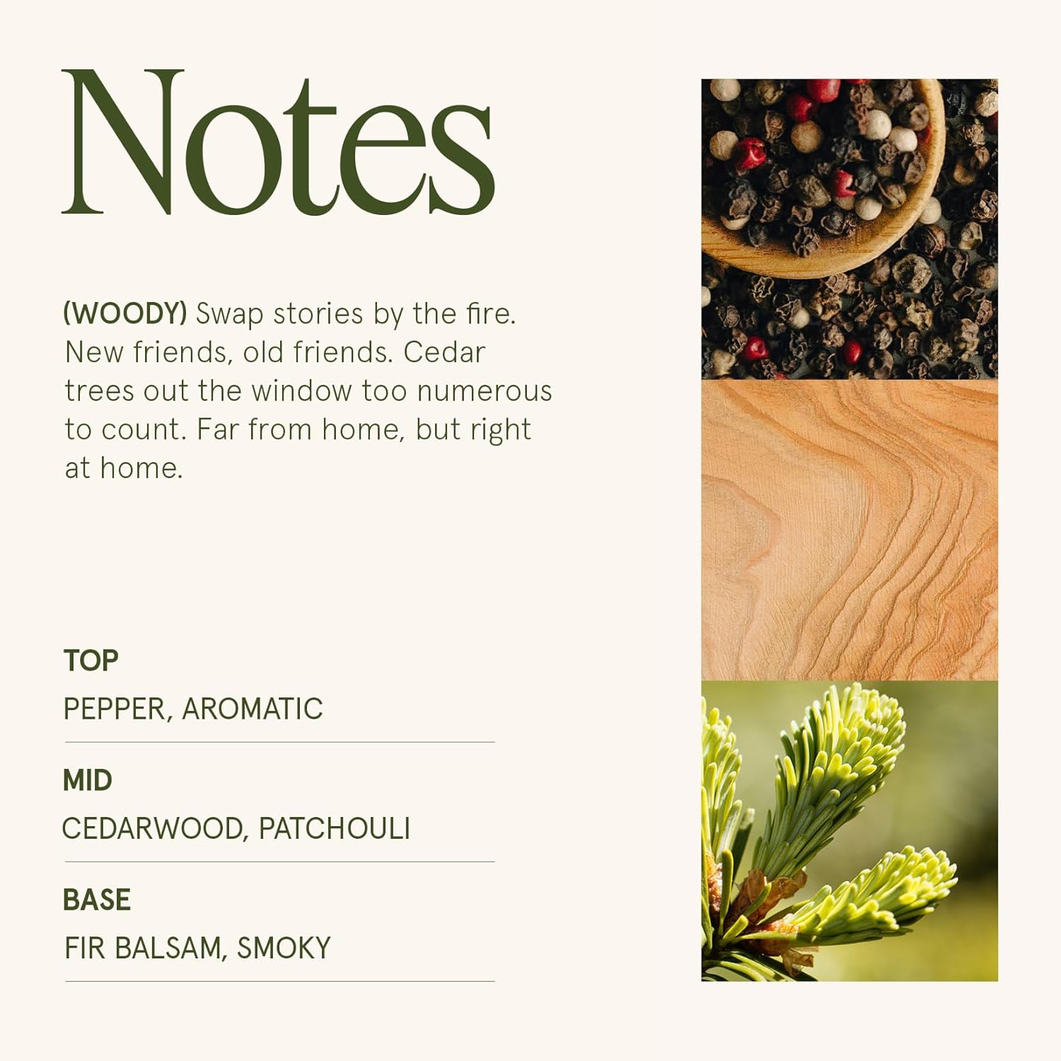 • STARLIT GOLDEN FIR - Crisp mountain air laced with refreshing cedarwood and earthy patchouli, then deepens into a forest of fir balsam, kissed by a wisp of campfire smoke. A reminiscent of a holiday family gathering under the evergreen conifer.