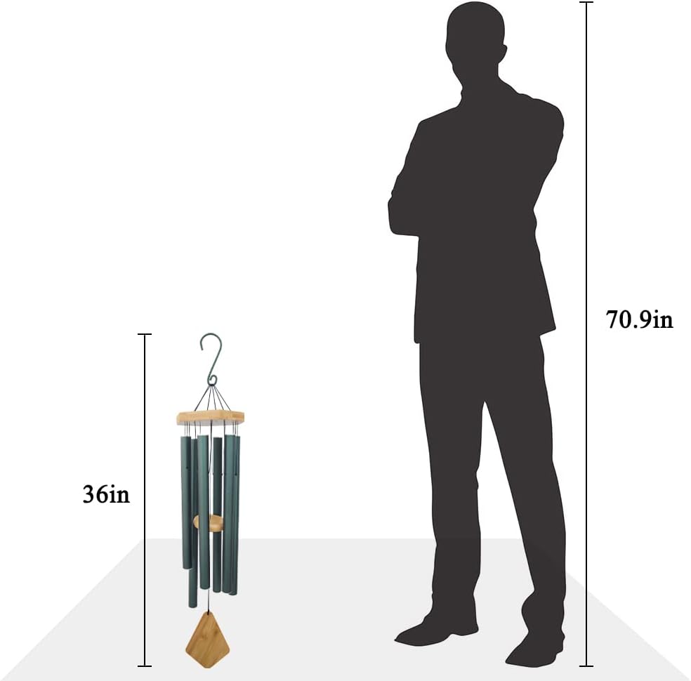 Wind Chimes Outdoor Deep Tone, 36 Inches Large WindChimes Outdoor Sympathy Windchime for Mom/Housewarming/Christmas, Garden Chimes for Outside Decoration. Green