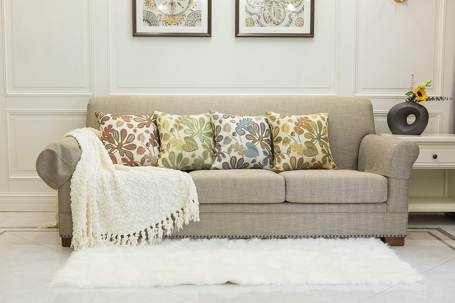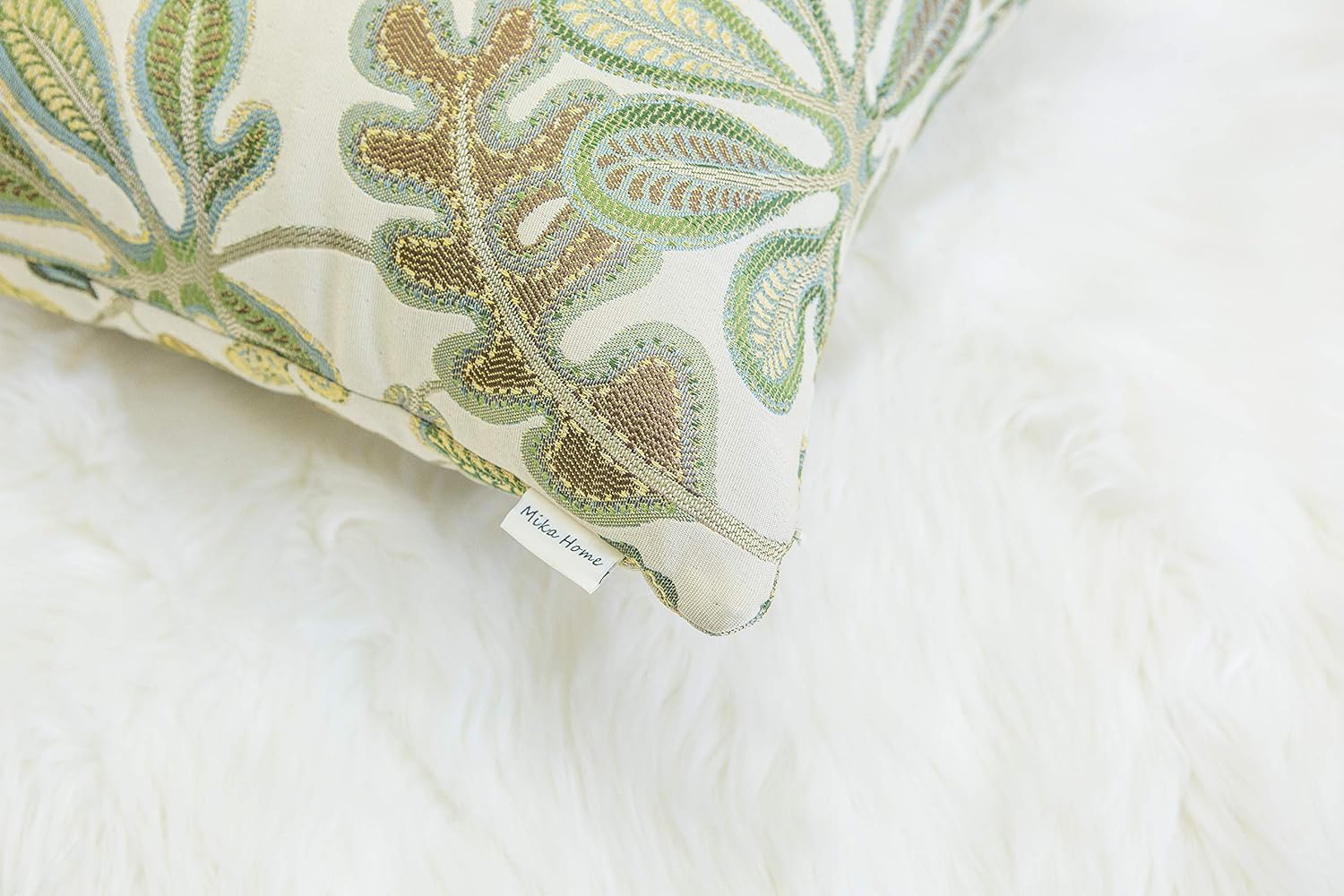 Set of 2 Jacquard Tropical Leaf Pattern Throw Pillow Covers Decorative Pillowcase 22X22 Inches,Green Cream