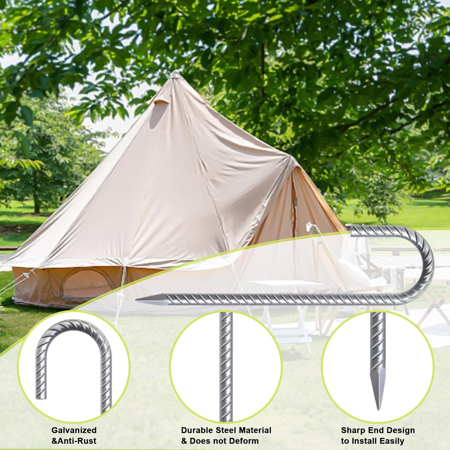 - J HOOK STAKES: The ground stakes are designed with a pointed end which can easy penetrate into the soil.Garden stakes make it easy to decorate your garden. And these heavy duty tent stakes with ridges are inserted firmly into the hard soil and not easy to pull out.