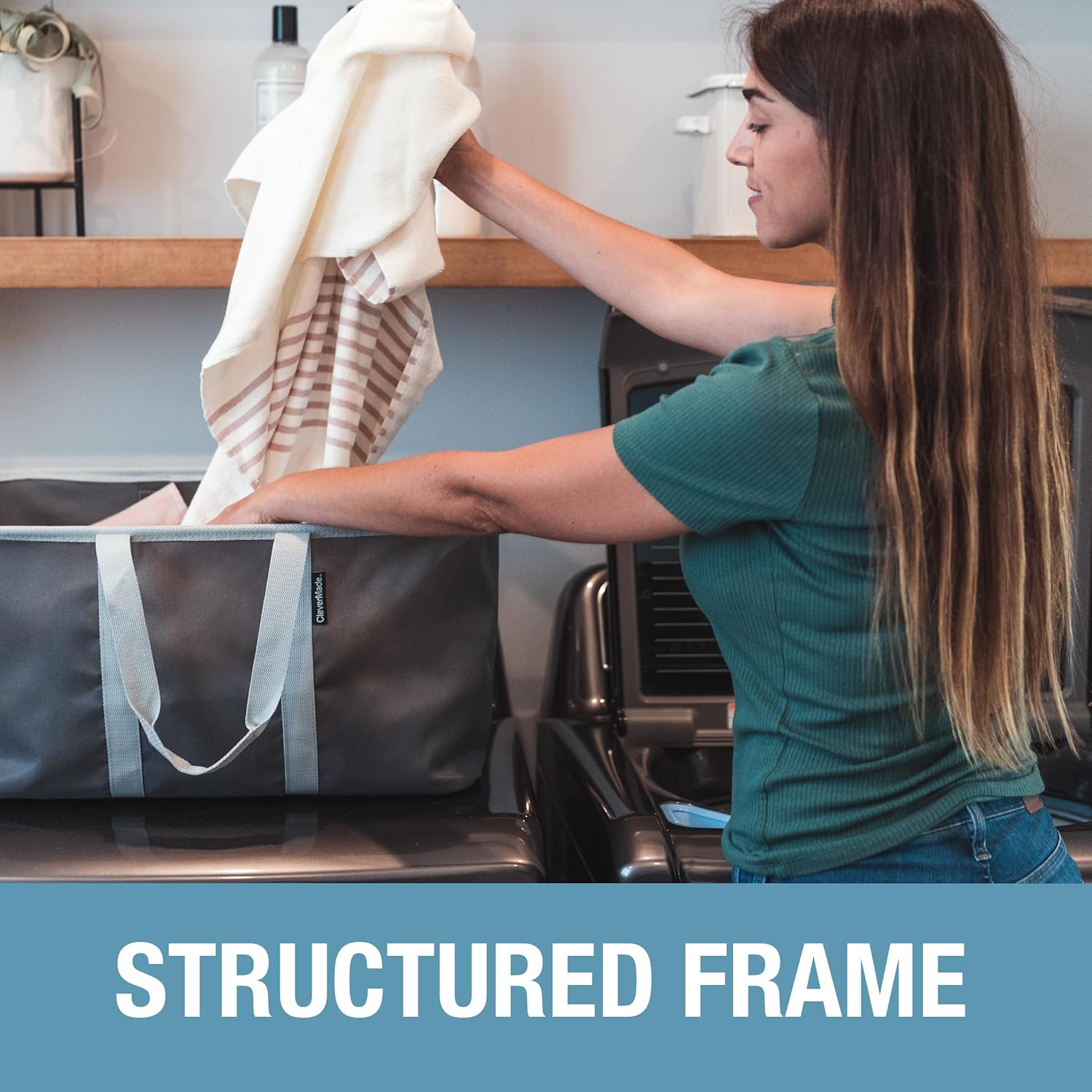 CleverMade Collapsible Laundry Tote - Denim Charcoal 2-Pack 50L - Foldable Storage Organization Container for Clothes Laundry Room Storage Solution