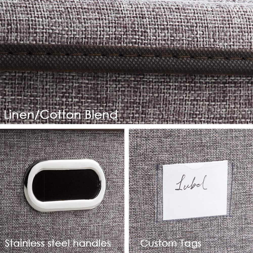PRANDOM Extra Large Collapsible Storage Bins with Lids [5-Pack] Linen Fabric Foldable Storage Baskets Boxes Organizer Containers Cube with Cover for Bedroom Closet Office Nursery (22.8x15.75x13.8)