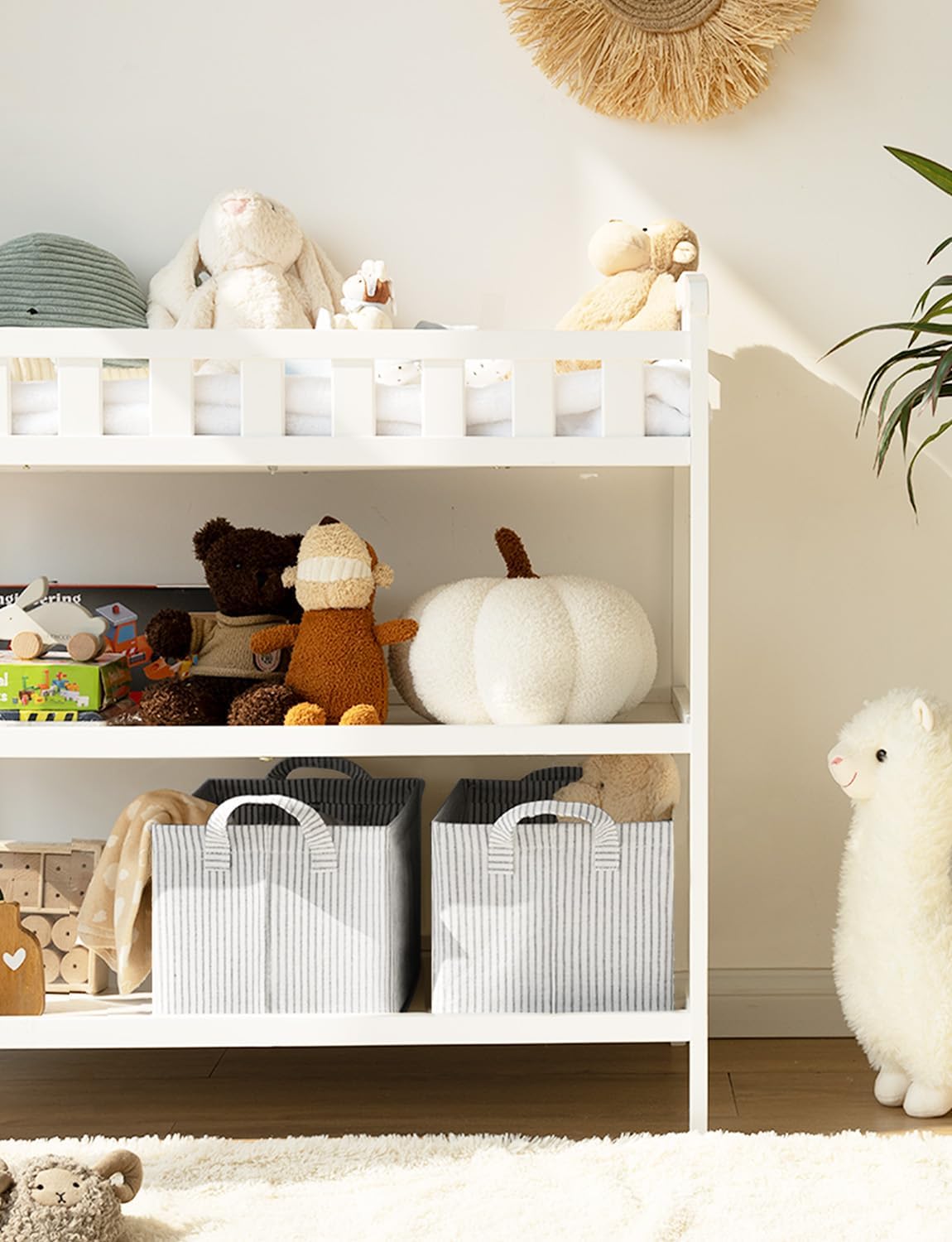 - Use Across Scenario: These shelf storage bins are sturdy enough to be used as clothing containers, helping you effectively organize your bedroom, living room, laundry room, or dorm room with simple and elegant color blocking designs to make your room tidier and prettier.