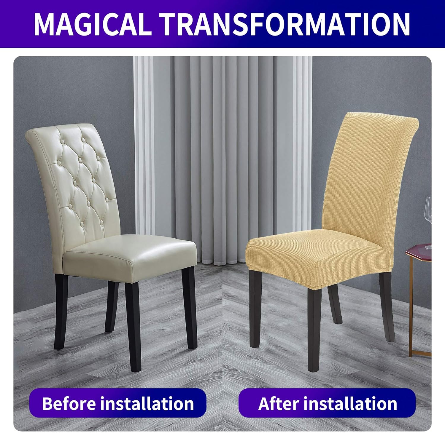 Howhic Stretch Chair Covers for Dining Room Set of 2, Removable Washable Dining Room Chair Covers, Dining Chair Slipcovers Seat Protector, Great Decoration for Home and Banquet (Champagne, 2 Pack)