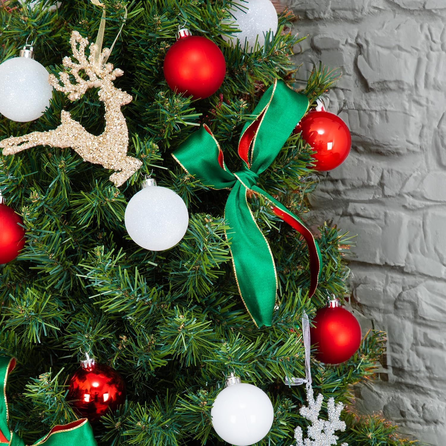 Every Day is Christmas Ornaments, Shatterproof Christmas Tree Ornament Set, Christmas Balls Decoration 50 Count (2.24"/57mm, Red White)