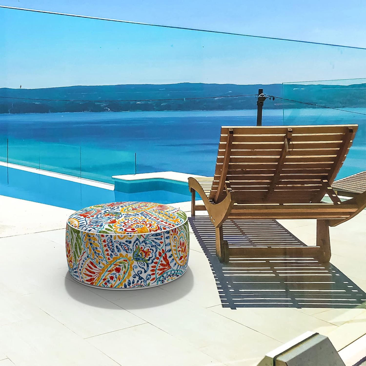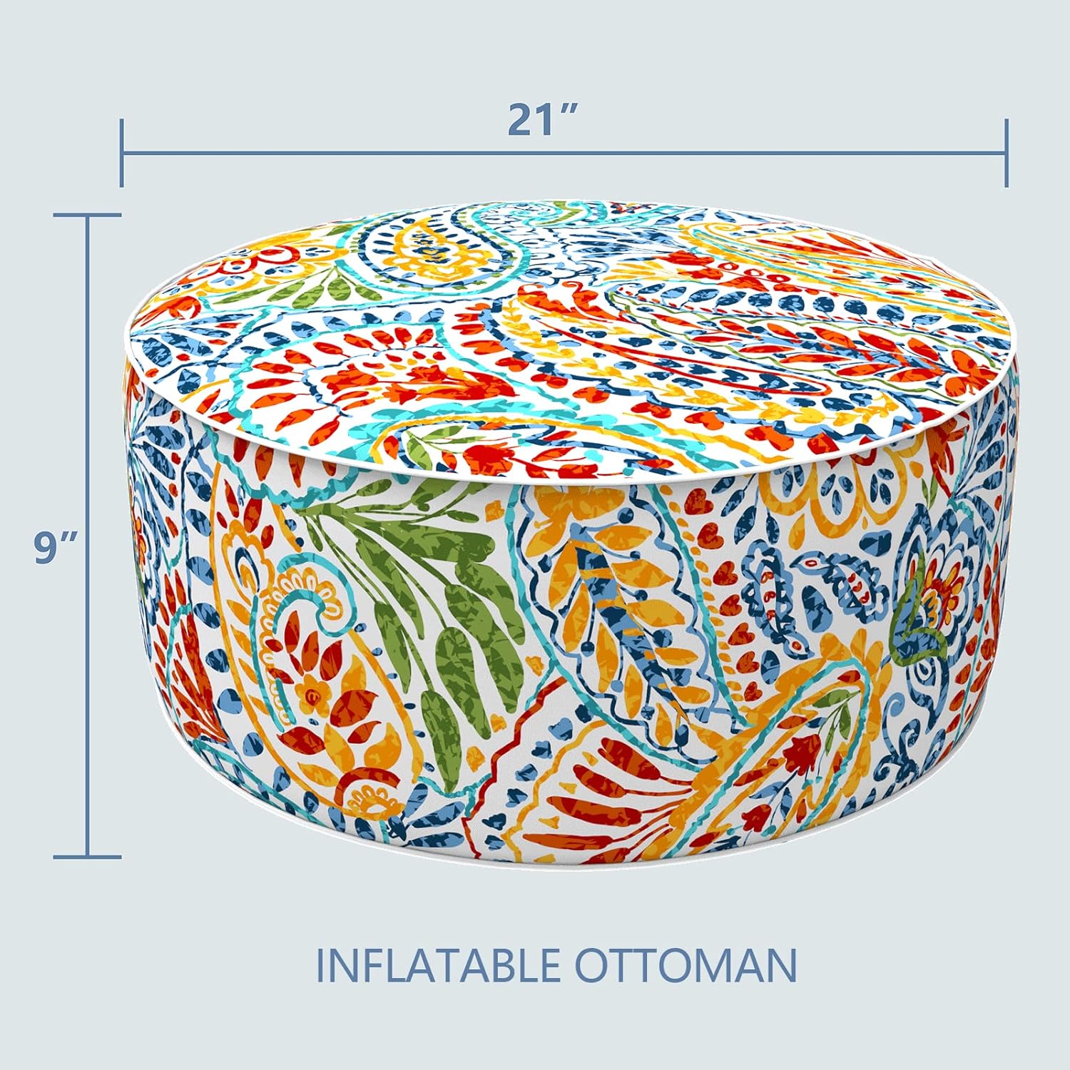 LVTXIII Indoor/Outdoor Inflatable Ottoman, All Weather Round Footrest Stool D21”x H9”, Portable for Patio Garden Camping or Home-Paisley Ummi Multi