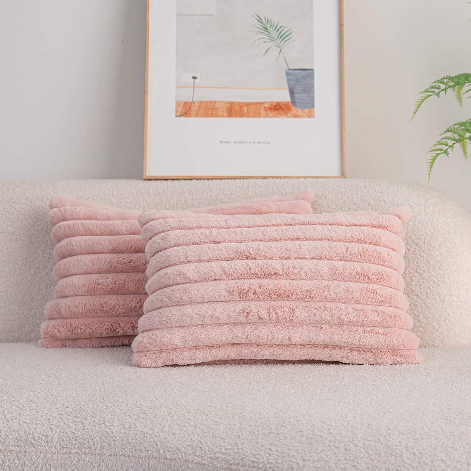 DEELAND Pack of 2,Double-Sided Faux Fur Plush Decorative Throw Pillow Covers Fuzzy Striped Soft Pillowcase Cushion Covers for Sofa Couch Bedroom