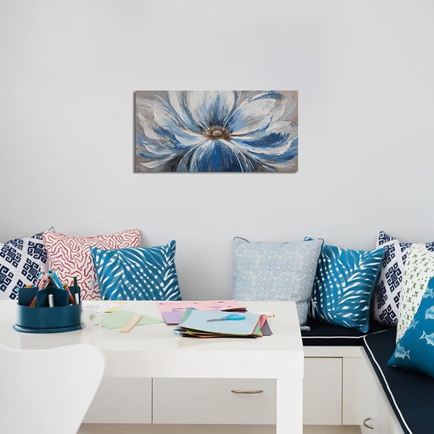 Flower Canvas Wall Art for Living Room Large White Blue Flower Picture Giclee Print Painting Wall Decor Framed Artwork Ready to Hang for Home Bedroom Wall Decoration Size 20x40