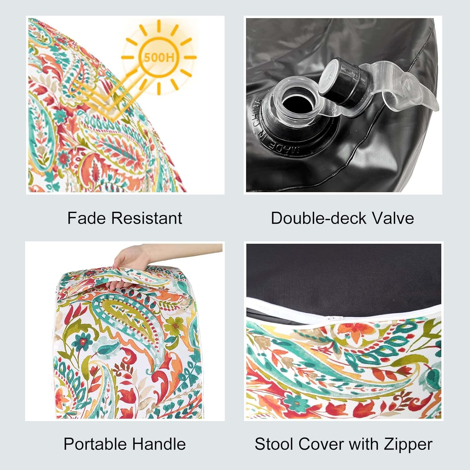 - SAFETY COMES FIRST: 250 micrometer PVC liner ensures lasting durability against tears and punctures; outdoor ottoman is light weighted enough to carry, but can also bear up to 220 pounds (100kg). It brings you comfort and sense of safety even if an adult sit on it.