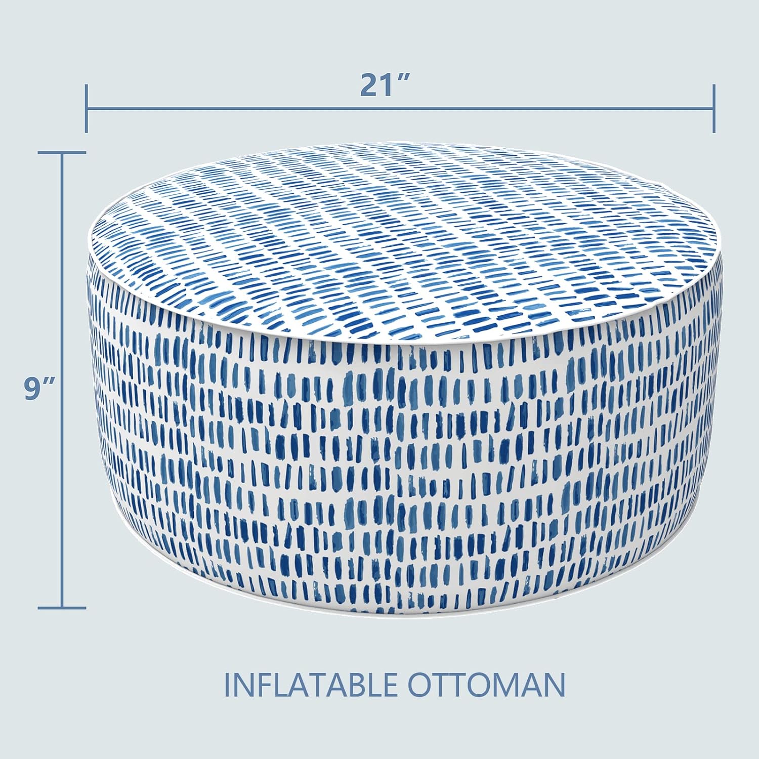 - COMPONENTS: This value bundle come with 1 pcs indoor outdoor inflatable ottoman measures D21β x W21" x H9β (53 x 53 x 23cm). Made of durable and soft polyester fabric, sturdy inflatable PVC liners. INFLATOR IS NOT INCLUDED.