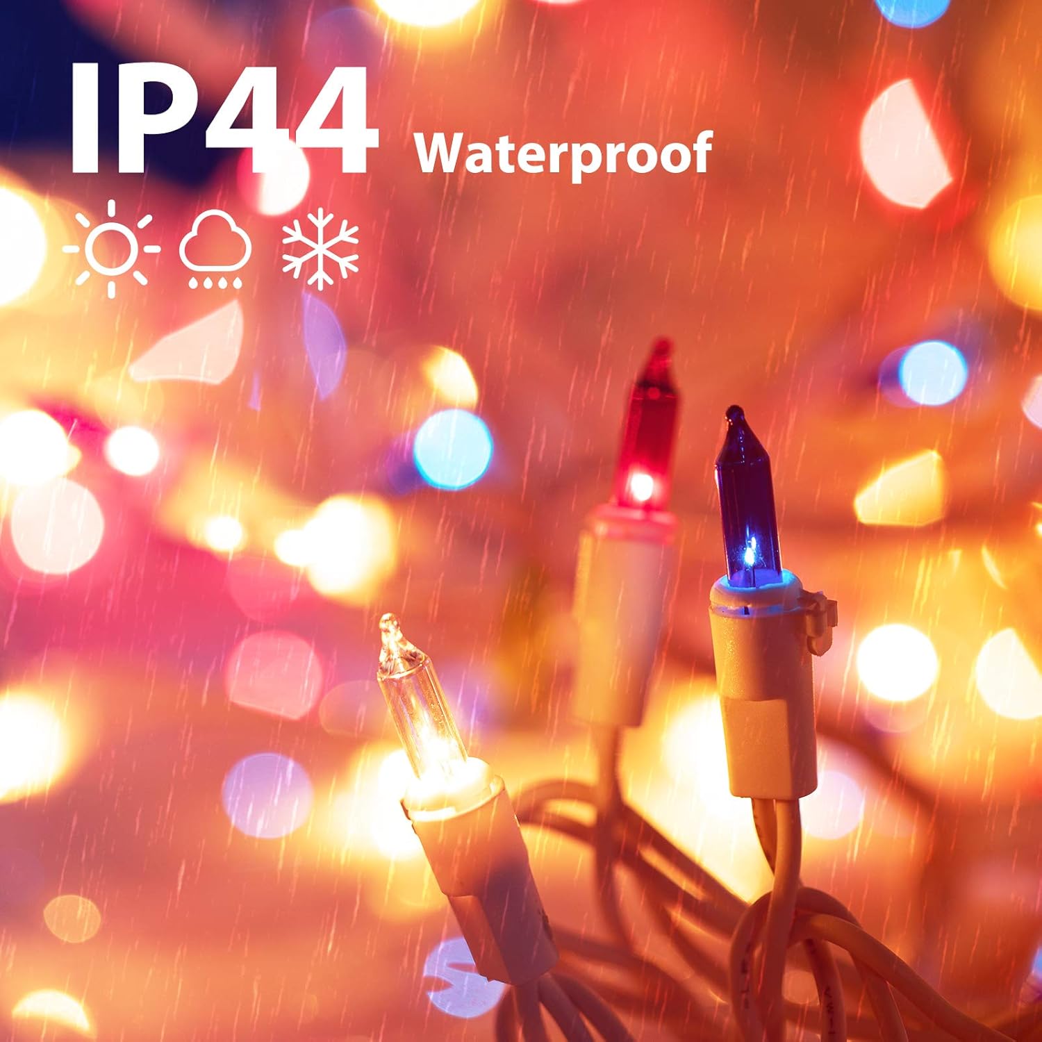 - Premium and Safe: The christmas lights are made of great material and superb craftsmanship, built in fuses, universal UL listed certification, IP44 waterproof, can be used safely. These 360ΒΊ sparkling waterproof string lights can not only provide good lighting effects but also bring a more romantic festive atmosphere, great for indoor and outdoor lighting decoration