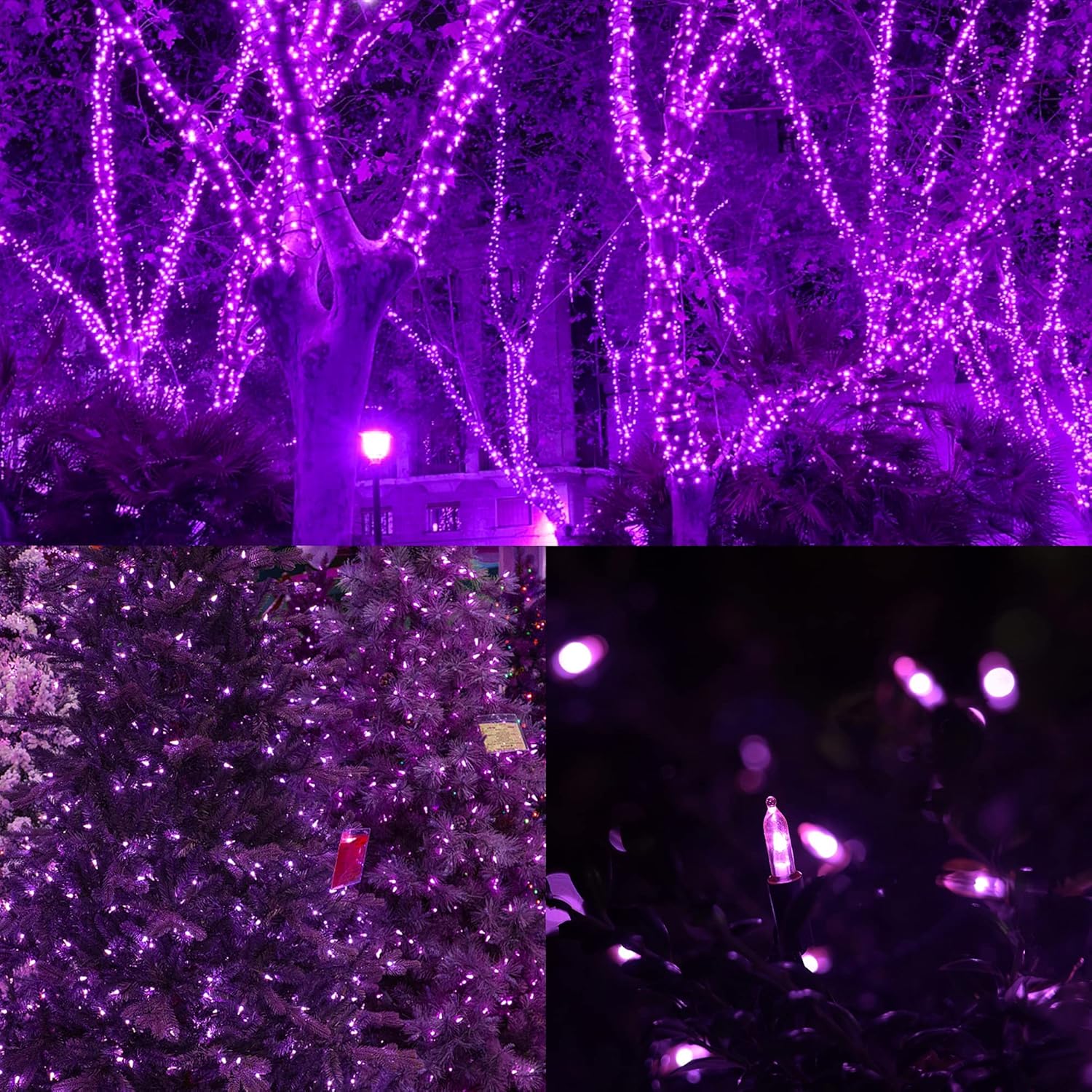 - [8 Lighting Modes]: Halloween purple range mini string light has 8 lighting modes for you to choose - Combination, In waves, Sequential, Slow Glow, Chasing/Flash, Slow fade, Twinkle/Flash, Steady on. Adjust the lighting modes by pressing the round button on the battery box.