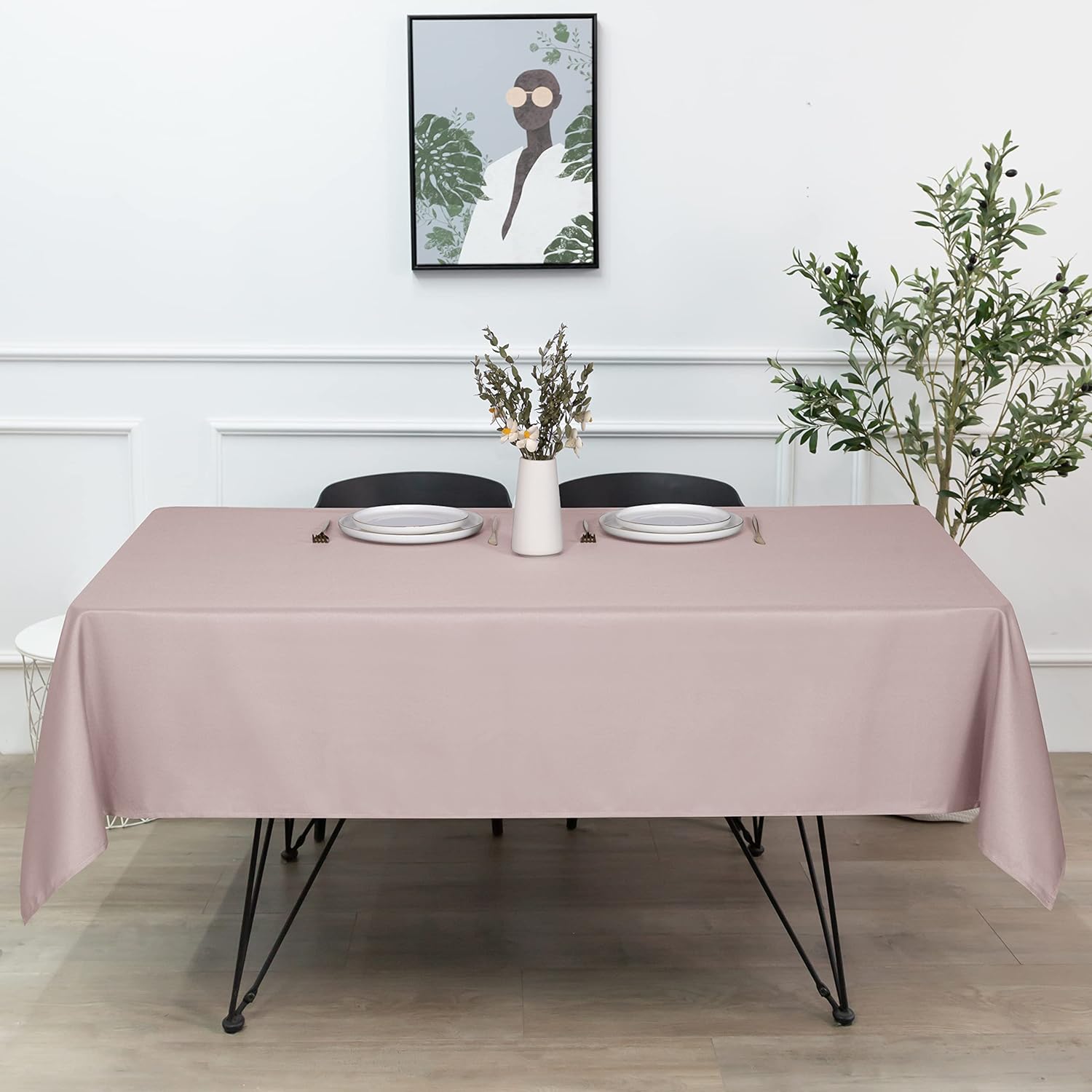 sancua Rectangle Tablecloth - 70 x 90 Inch - Stain and Wrinkle Resistant Washable Polyester Table Cloth, Decorative Fabric Table Cover for Dining Tables, Buffet Parties and Camping, Blush