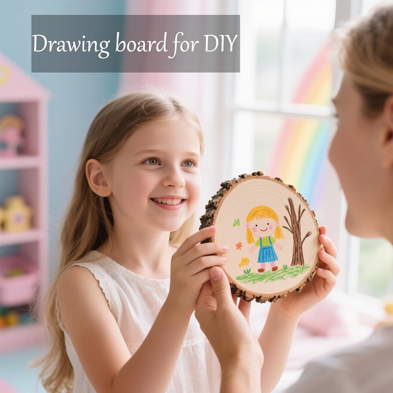 - [DIY SET]The blank surface of the wood circles for crafts allows you to draw, dye, write or mark wood burning. Our new combination of 40 pieces has 12-meter-long hemp rope and high-quality hand twist drill. After you finish your creation of wood slices, you can drill holes on the surface of it and use hemp rope to wear it on the wall or other places for decoration.The new set allows you create your own personalized wooden circles project and enjoy the fun of making DIY crafts.