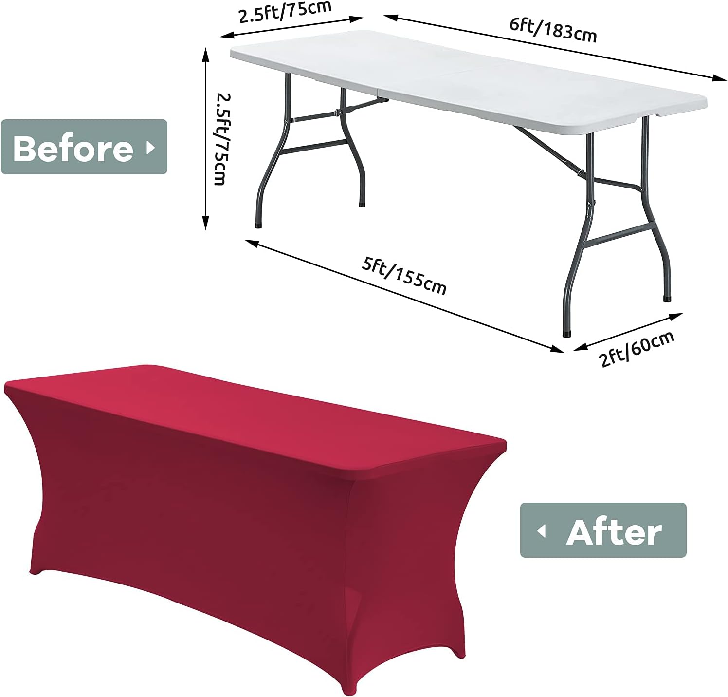 - [Easy To Set Up]: Our table cover is easy for you to set up,just wrap around your table, put 4 table legs into Elastic leg pockets,and ensuring that every part of the rectangular table is covered and spandex table cloth cover is displayed uniformly;It can be used for both indoors and outdoors