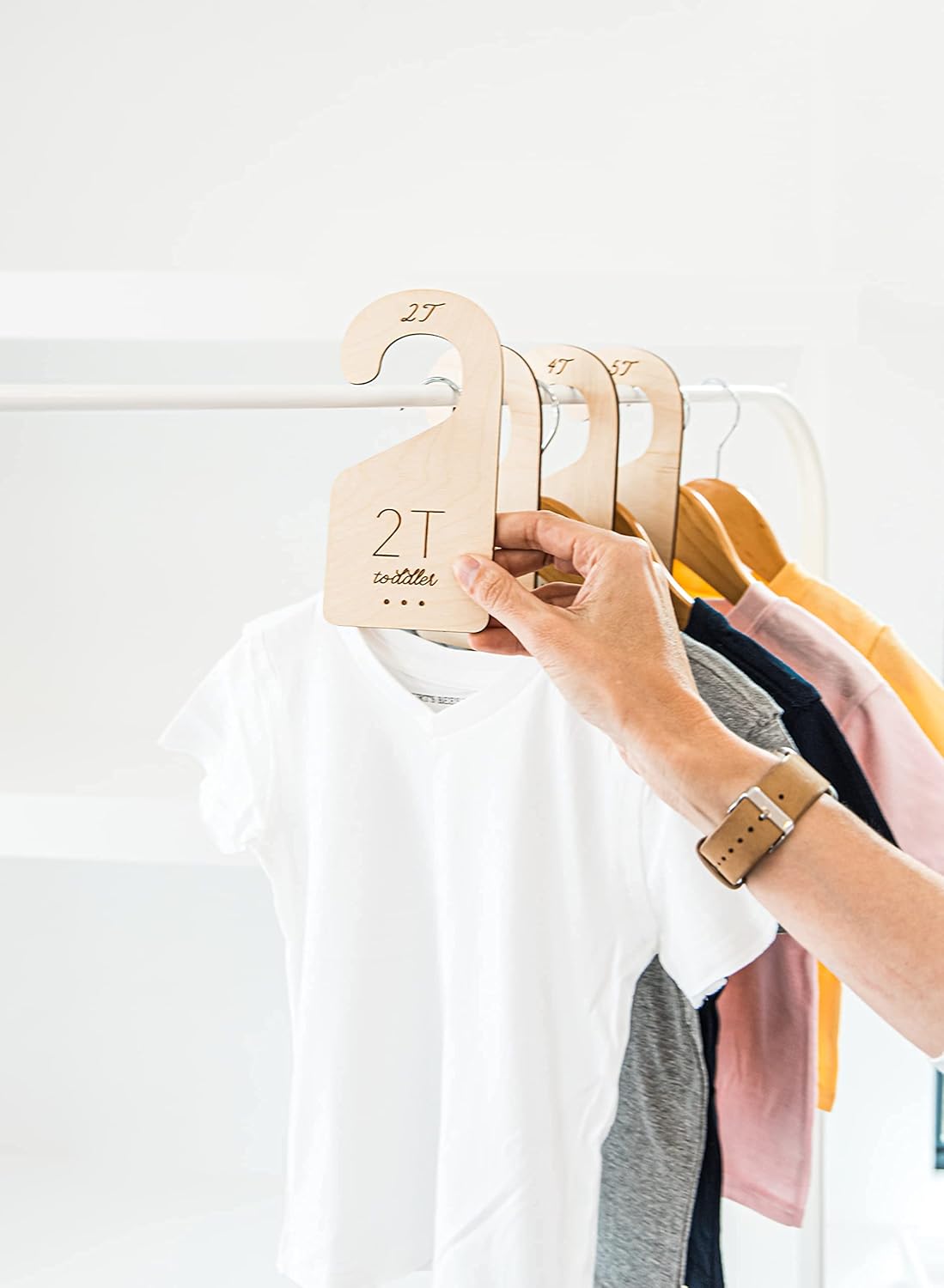 - OUR 4 PIECE TODDLER CLOSET DIVIDER SET makes ORGANIZING those adorable outfits and marking the precious changes your kid goes through SIMPLE. This set includes toddler clothes size dividers for 2T, 3T, 4T, and 5T. For a special touch that MAKES THOSE TREASURED TIMES ALL THE SWEETER AND MORE MEMORABLE.