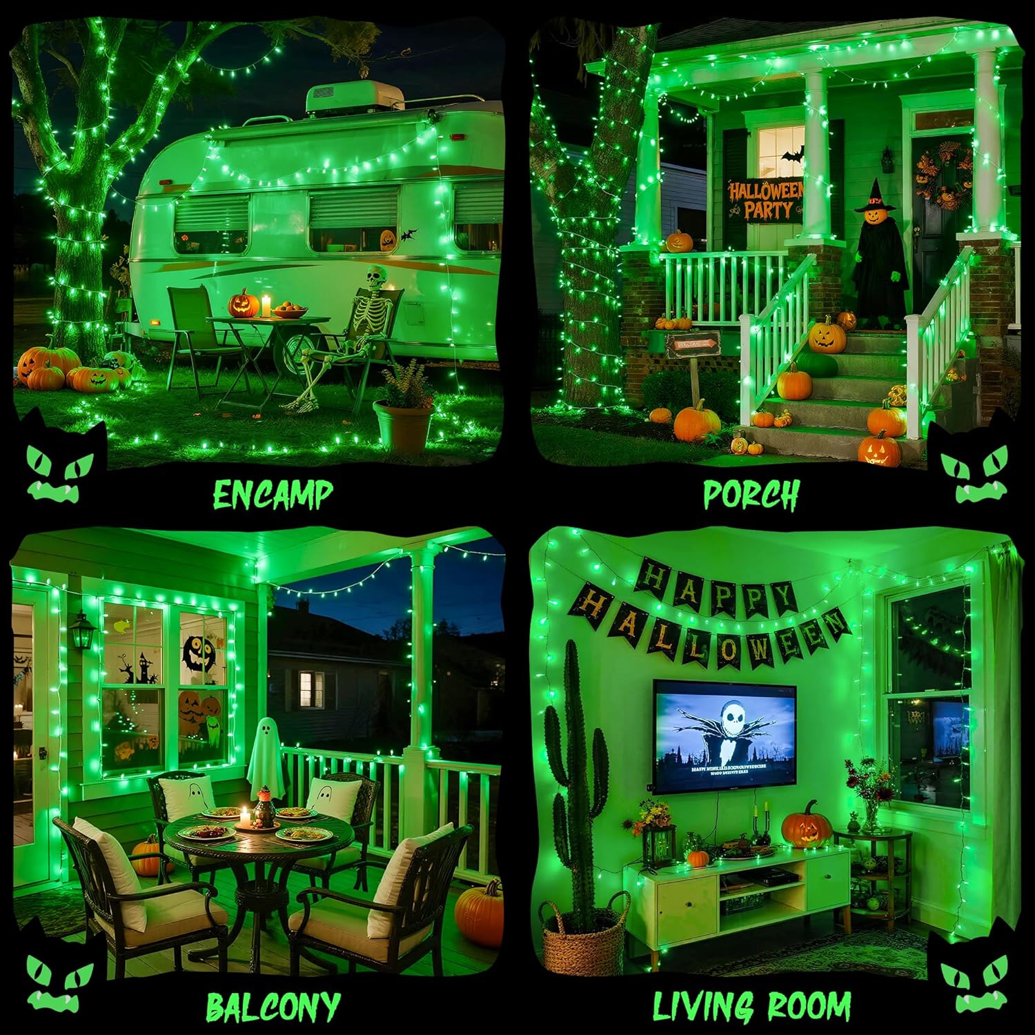 - PORTABLE & WATERPROOF & SAFER : Green Halloween lights no need socket, only 3 * AA batteries (Not included) are enough. So you can bring them anywhere. No worry about rain or snow getting into the battery pack as it has a seal strip, but don't soak. Halloween lights are also safer than plug-in string lights. People can rest assured to touch and play