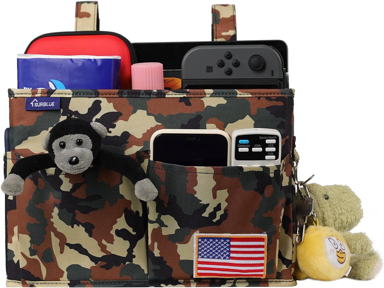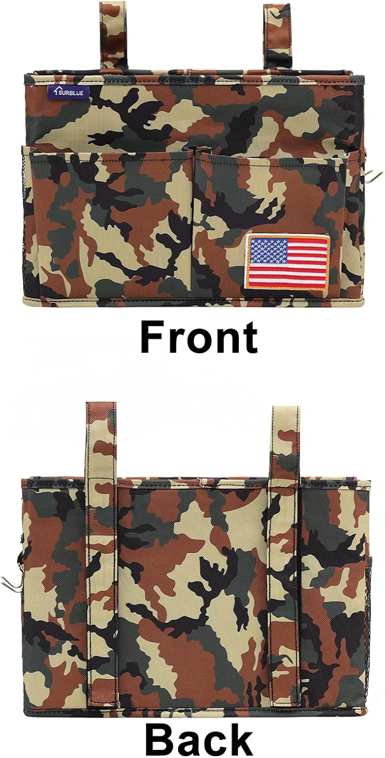 Surblue Bedside Caddy Hanging Organizer Storage Bag Pocket for Bunk, Hospital Beds, College Dorm Rooms, Baby Bed Rails, Wheelchair Side Bag, Camp Chairs, 4 Pockets and 2 Hooks (Small Jungle)
