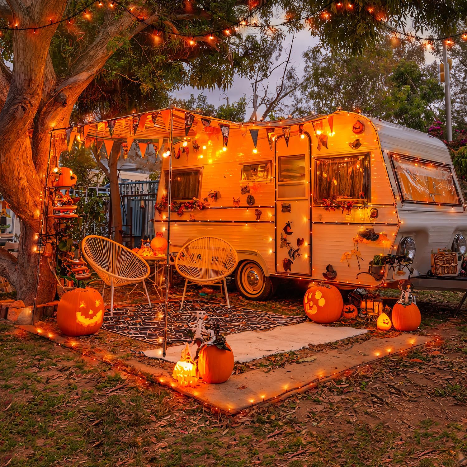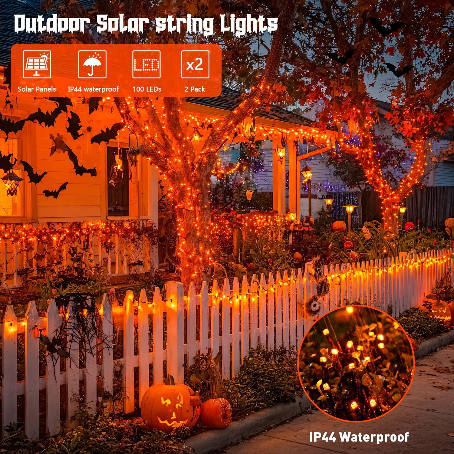 - Easy to Install and Widely Used Orange Halloween Lights: 8-12 hours of charging during the sunny day, 8 hours of automatic work in the dark. Solar panels with ground stakes that you can place in a sunny place. The 42.7-foot-long light string is perfect for wrapping in a tree or anywhere you want to decorate. It creates a joyful and festive atmosphere for decorative passageways, gardens, terraces, yards, lawns, fences, porches, roofs, Halloween, weddings, holidays, parties, etc