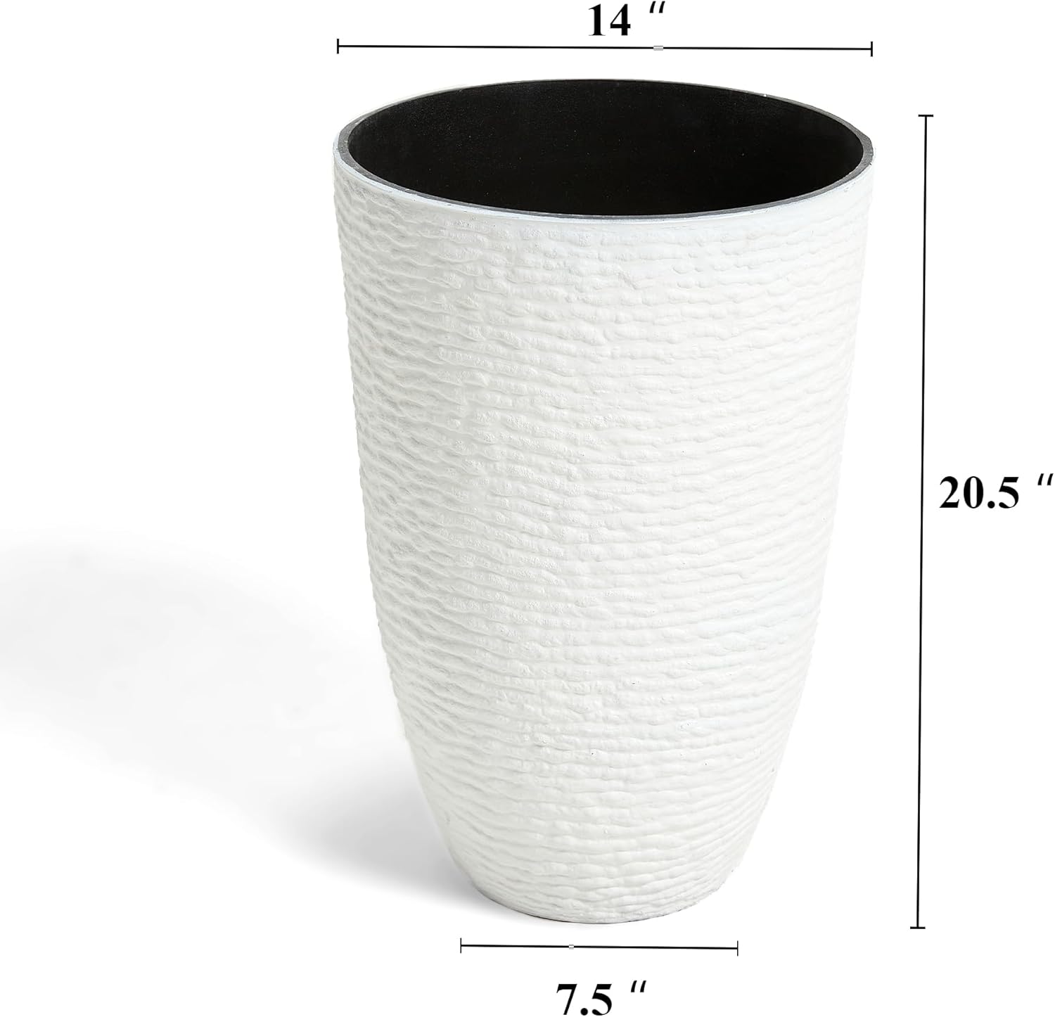 - Classic Appearance: Its curved silhouette and raised details offer up a touch of classic character, while a solid matte finish with grain texture updates the look; These tall tree planter is an ideal for a patio accent or flanked along an entrance wall; Gives your tall plants a tall planter! Size:14'' (Dia.) x 20.5'' (H.)